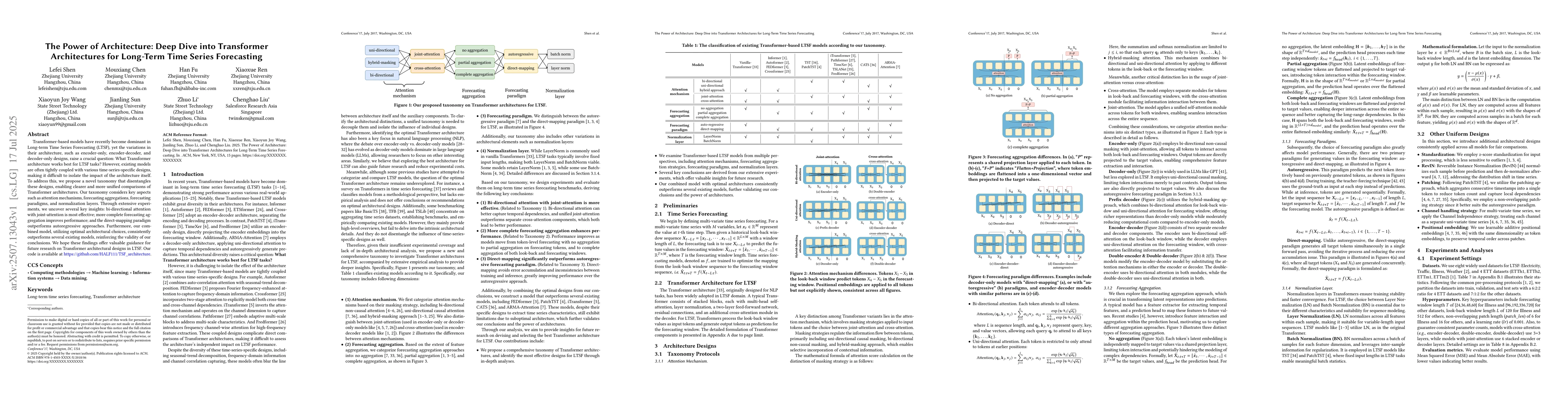 The research distinguishes itself by proposing a taxonomy that separates Transformer architecture designs, providing a unified framework for comparing different architectures in LTSF tasks.