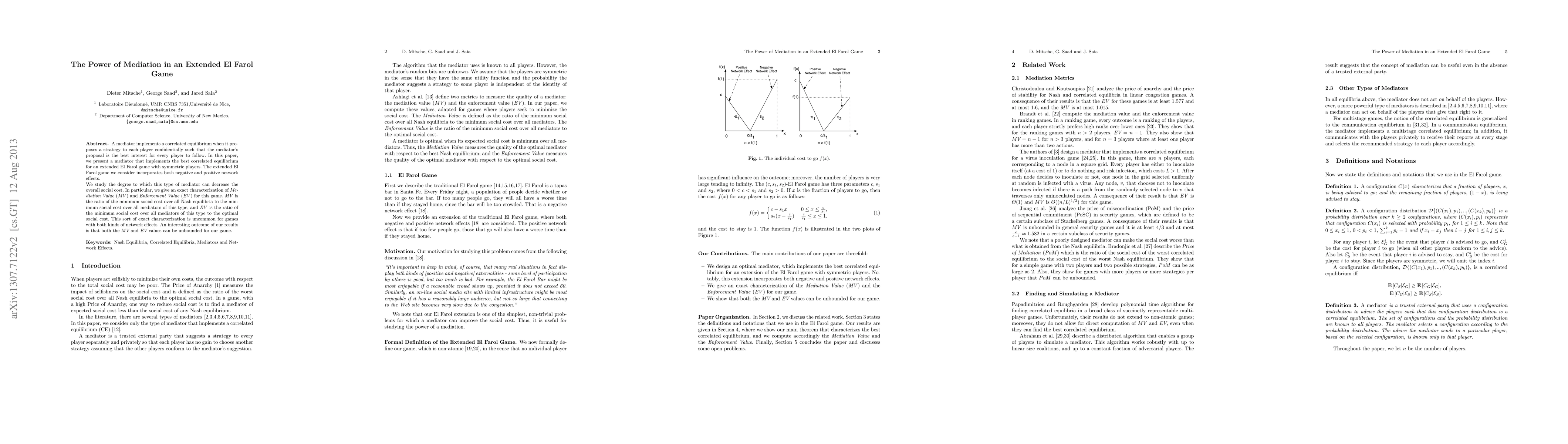 This paper explores a mediator's role in achieving the best correlated equilibrium in an extended El Farol game, which includes both negative and positive network effects. The study provides an exact characterization of Mediation Value (MV) and Enforcement Value (EV), revealing that both can be unbounded, indicating the mediator's potential to significantly reduce social costs.