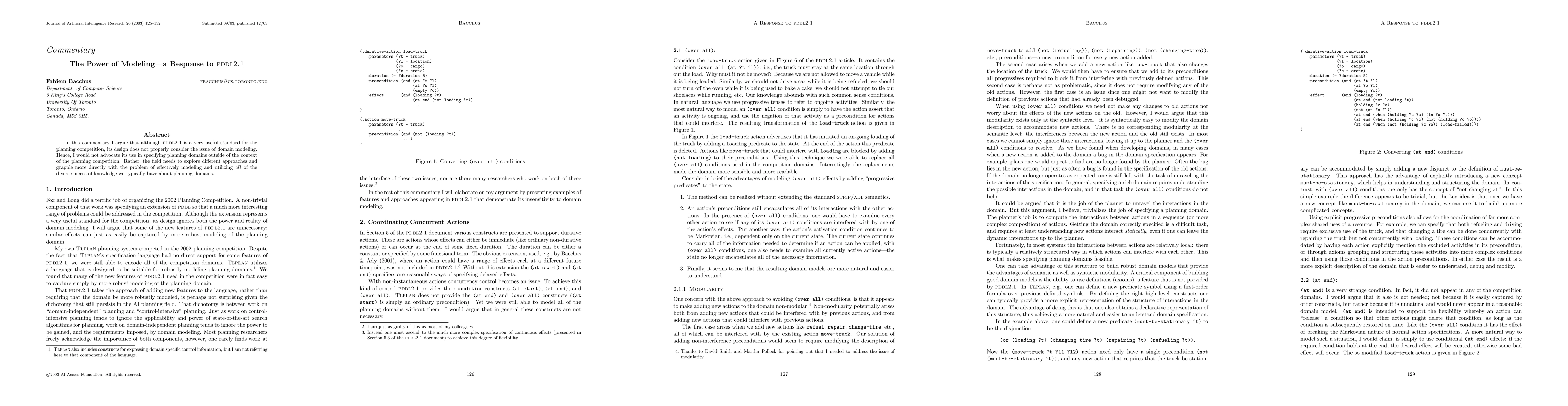 In this commentary I argue that although PDDL is a very useful standard for the planning competition, its design does not properly consider the issue of domain modeling. Hence, I would not advocate its use in specifying planning domains outside of the context of the planning competition. Rather, the field needs to explore different approaches and grapple more directly with the problem of effectively modeling and utilizing all of the diverse pieces of knowledge we typically have about planning domains.