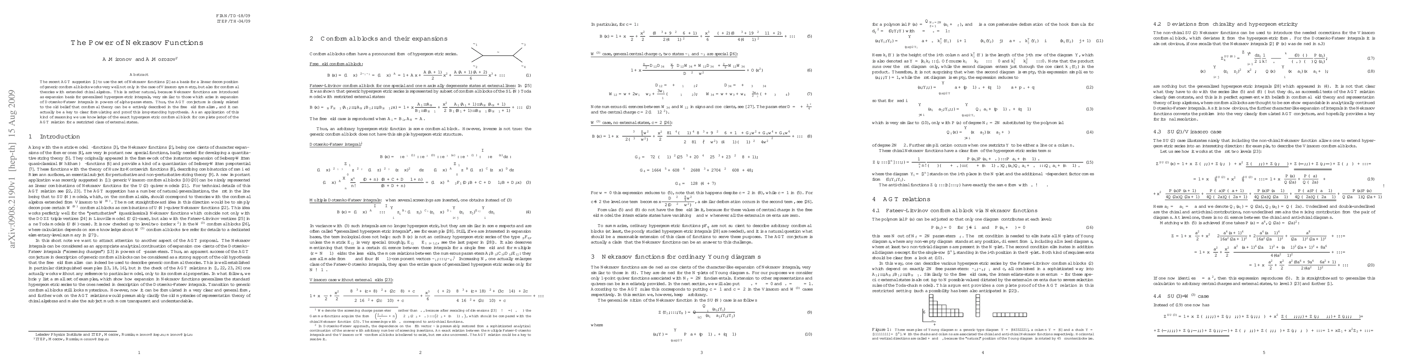 The recent AGT suggestion to use the set of Nekrasov functions as a basis for a linear decomposition of generic conformal blocks works very well not only in the case of Virasoro symmetry, but also for conformal theories with extended chiral algebra. This is rather natural, because Nekrasov functions are introduced as expansion basis for generalized hypergeometric integrals, very similar to those which arise in expansion of Dotsenko-Fateev integrals in powers of alpha-parameters. Thus, the AGT conjecture is closely related to the old belief that conformal theory can be effectively described in the free field formalism, and it can actually be a key to clear formulating and proof this long-standing hypothesis. As an application of this kind of reasoning we use knowledge of the exact hypergeometric conformal block for complete proof of the AGT relation for a restricted class of external states.