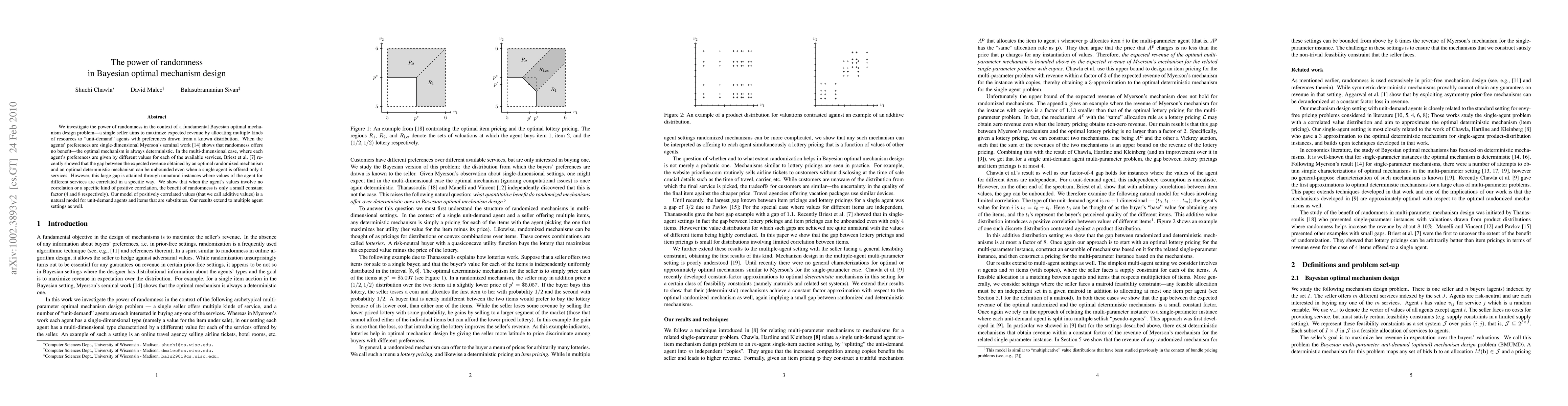 We investigate the power of randomness in the context of a fundamental Bayesian optimal mechanism design problem--a single seller aims to maximize expected revenue by allocating multiple kinds of resources to "unit-demand" agents with preferences drawn from a known distribution. When the agents' preferences are single-dimensional Myerson's seminal work [Myerson '81] shows that randomness offers no benefit--the optimal mechanism is always deterministic. In the multi-dimensional case, where each agent's preferences are given by different values for each of the available services, Briest et al. [Briest, Chawla, Kleinberg, and Weinberg '10] recently showed that the gap between the expected revenue obtained by an optimal randomized mechanism and an optimal deterministic mechanism can be unbounded even when a single agent is offered only 4 services. However, this large gap is attained through unnatural instances where values of the agent for different services are correlated in a specific way. We show that when the agent's values involve no correlation or a specific kind of positive correlation, the benefit of randomness is only a small constant factor (4 and 8 respectively). Our model of positively correlated values (that we call additive values) is a natural model for unit-demand agents and items that are substitutes. Our results extend to multiple agent settings as well.