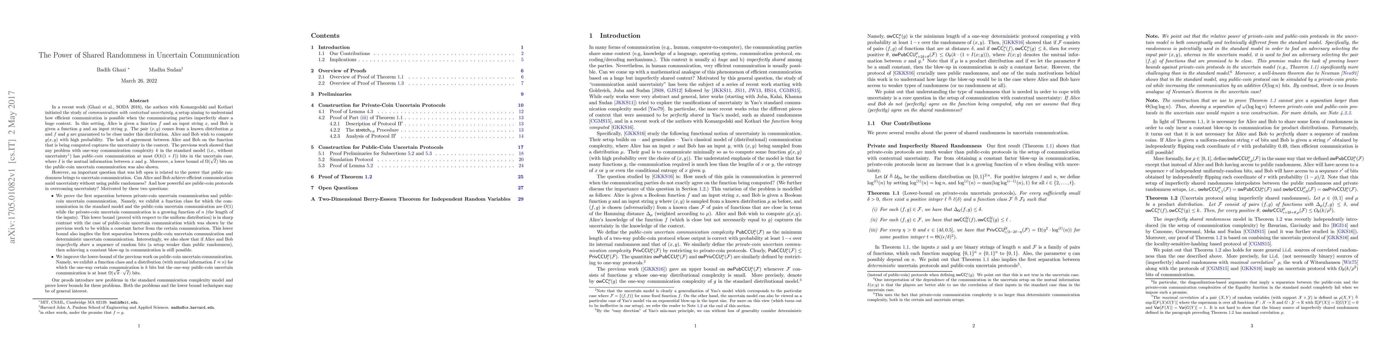 A study investigates the power of shared randomness in uncertain communication, showing that public-coin protocols can overcome uncertainty but private-coin protocols cannot.