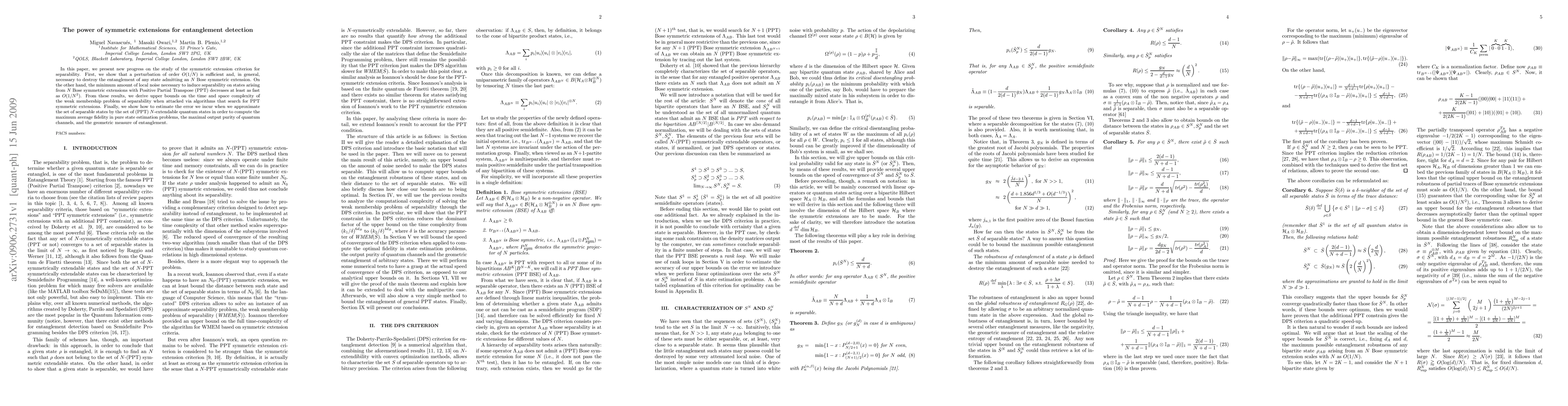 In this paper, we present new progress on the study of the symmetric extension criterion for separability. First, we show that a perturbation of order O(1/N) is sufficient and, in general, necessary to destroy the entanglement of any state admitting an N Bose symmetric extension. On the other hand, the minimum amount of local noise necessary to induce separability on states arising from N Bose symmetric extensions with Positive Partial Transpose (PPT) decreases at least as fast as O(1/N^2). From these results, we derive upper bounds on the time and space complexity of the weak membership problem of separability when attacked via algorithms that search for PPT symmetric extensions. Finally, we show how to estimate the error we incur when we approximate the set of separable states by the set of (PPT) N -extendable quantum states in order to compute the maximum average fidelity in pure state estimation problems, the maximal output purity of quantum channels, and the geometric measure of entanglement.