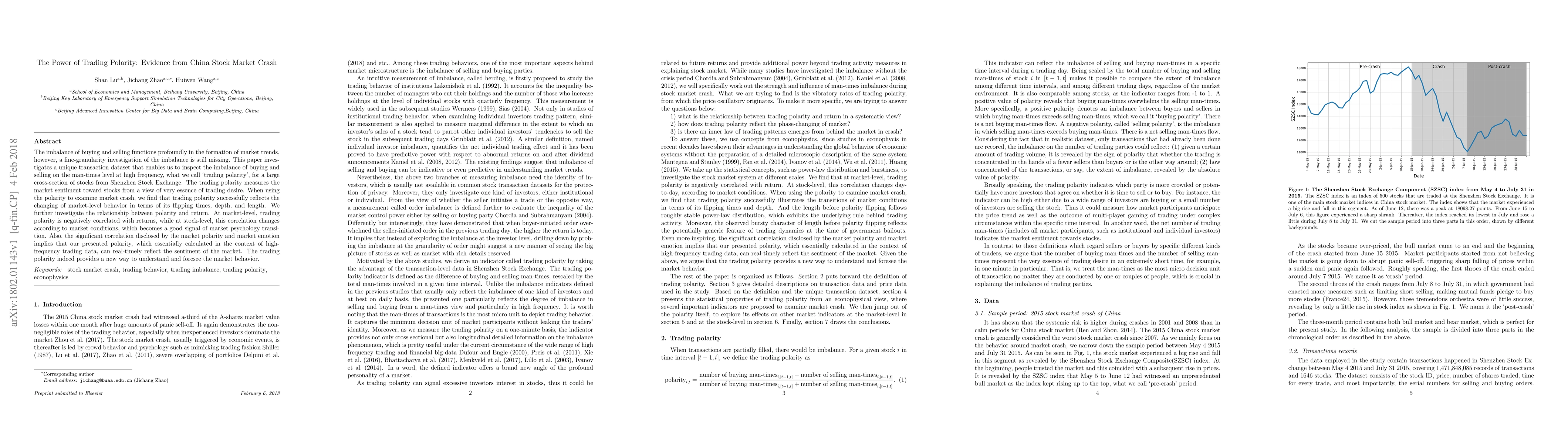 This paper investigates "trading polarity," a high-frequency measure of buying and selling imbalance, using a detailed dataset from the Shenzhen Stock Exchange. It finds that trading polarity effectively captures market sentiment and behavior, especially during market crashes, and correlates negatively with market returns, providing insights into market psychology and behavior.
