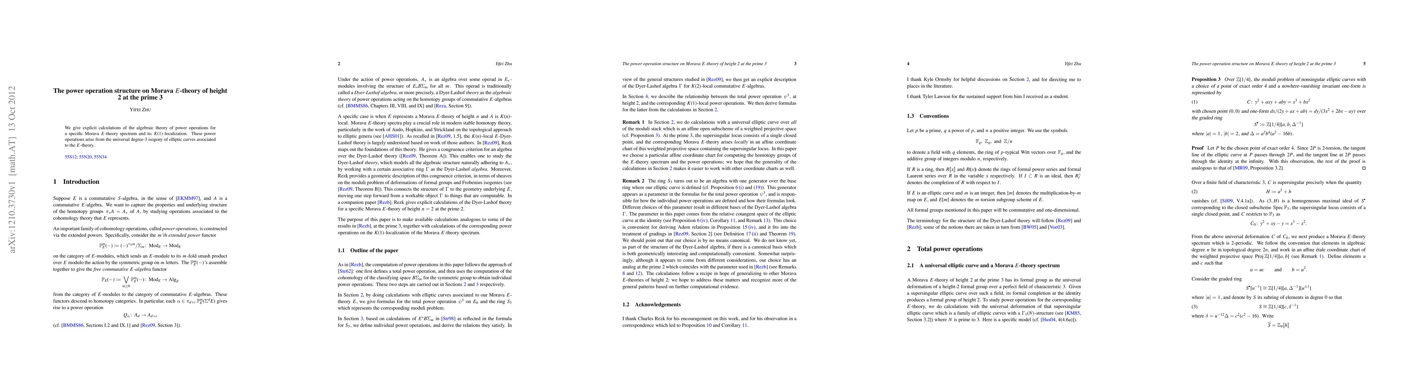 Summary: This paper presents detailed calculations of power operations in Morava E-theory of height 2 at the prime 3, focusing on the associated K(1)-localization and the universal degree-3 isogeny of elliptic curves. The findings provide insights into the algebraic structures underlying these theories.
