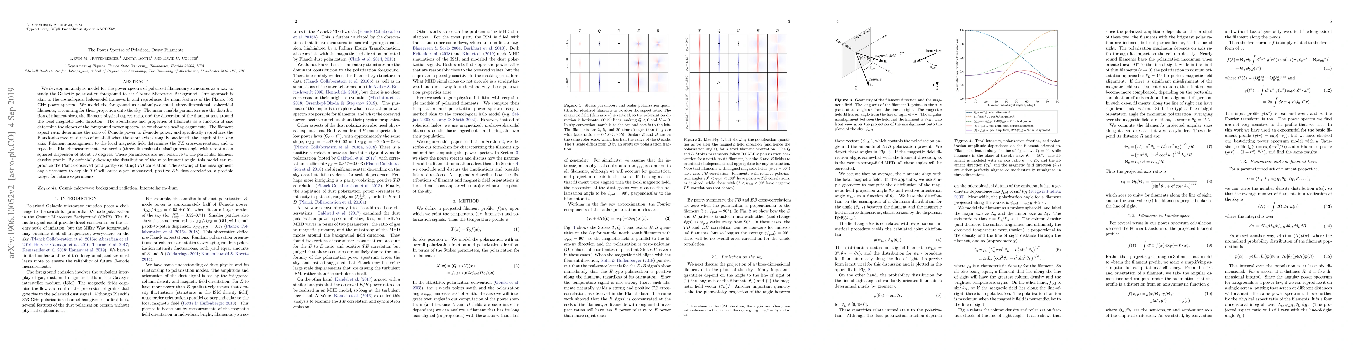 We develop an analytic model for the power spectra of polarized filamentary structures as a way to study the Galactic polarization foreground to the Cosmic Microwave Background. Our approach is akin to the cosmological halo-model framework, and reproduces the main features of the Planck 353 GHz power spectra. We model the foreground as randomly-oriented, three-dimensional, spheroidal filaments, accounting for their projection onto the sky. The main tunable parameters are the distribution of filament sizes, the filament physical aspect ratio, and the dispersion of the filament axis around the local magnetic field direction. The abundance and properties of filaments as a function of size determine the slopes of the foreground power spectra, as we show via scaling arguments. The filament aspect ratio determines the ratio of $B$-mode power to $E$-mode power, and specifically reproduces the Planck-observed dust ratio of one-half when the short axis is roughly one-fourth the length of the long axis. Filament misalignment to the local magnetic field determines the $TE$ cross-correlation, and to reproduce Planck measurements, we need a (three-dimensional) misalignment angle with a root mean squared dispersion of about 50 degrees. These parameters are not sensitive to the particular filament density profile. By artificially skewing the distribution of the misalignment angle, this model can reproduce the Planck-observed (and parity-violating) $TB$ correlation. The skewing of the misalignment angle necessary to explain $TB$ will cause a yet-unobserved, positive $EB$ dust correlation, a possible target for future experiments.