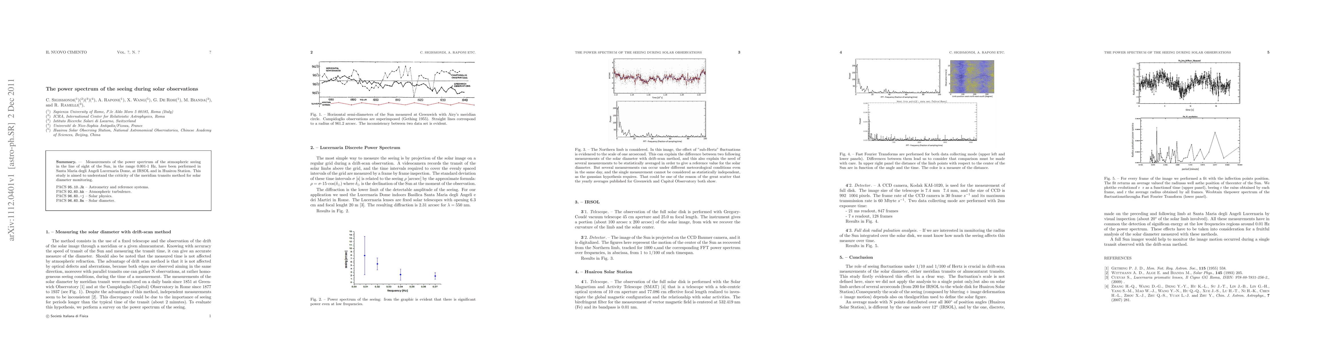 The paper presents a comprehensive analysis of the power spectrum of seeing during solar observations, employing various telescopes and detectors across multiple locations.