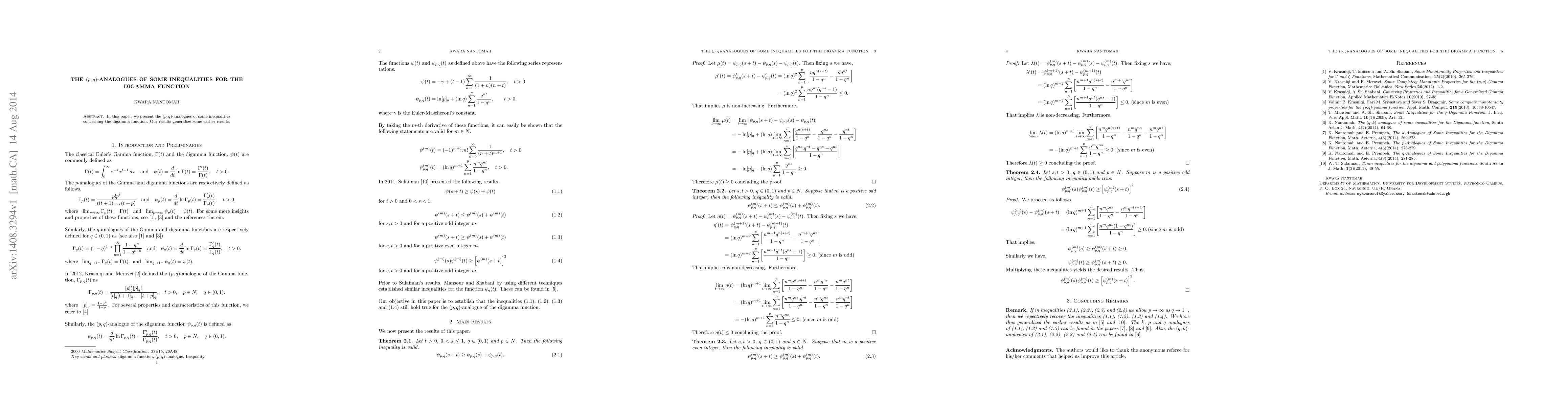 This paper presents (p; q)-analogues of inequalities concerning the digamma function, generalizing earlier results with a focus on the methodology and key findings related to the digamma function.