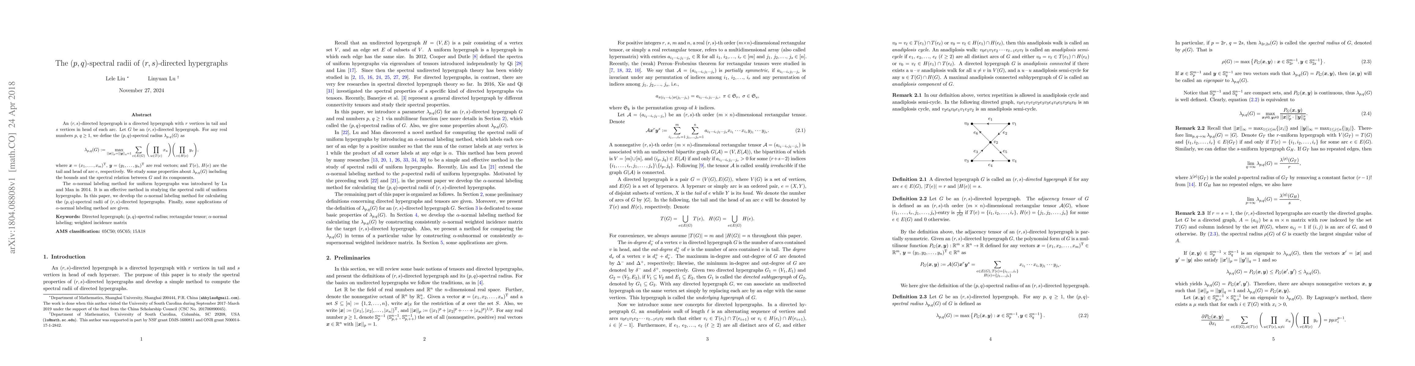 This paper introduces the $(p,q)$-spectral radius for $(r,s)$-directed hypergraphs and develops an $\alpha$-normal labeling method to calculate these radii. It explores properties, bounds, and spectral relations, extending previous work on uniform hypergraphs.