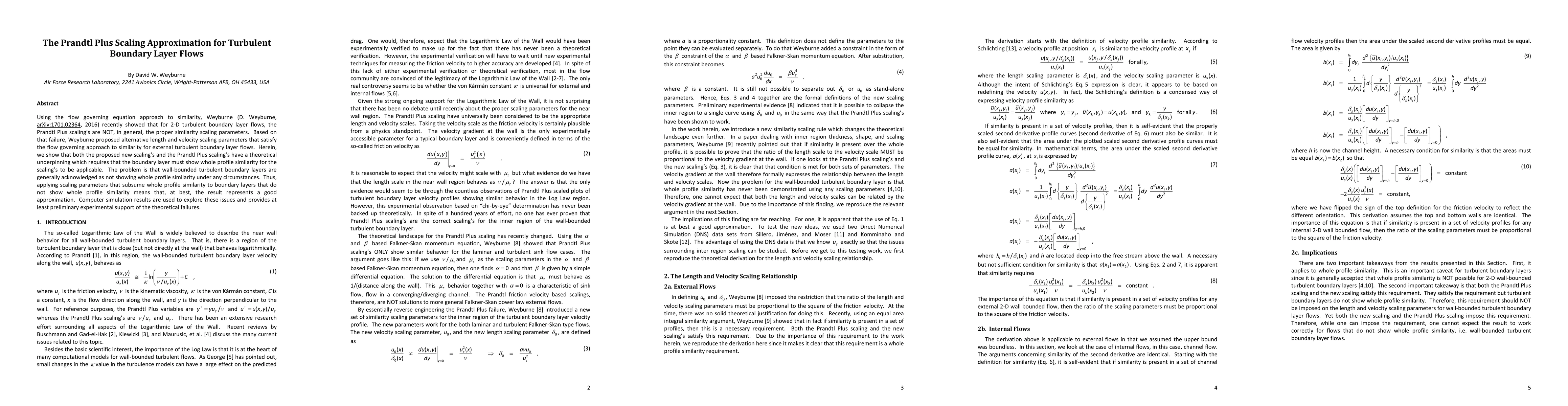 Using the flow governing equation approach to similarity, Weyburne (D. Weyburne, arXiv:1701.02364, 2016) recently showed that for 2-D turbulent boundary layer flows, the Prandtl Plus scalings are NOT, in general, the proper similarity scaling parameters. Based on that failure, Weyburne proposed alternative length and velocity scaling parameters that satisfy the flow governing approach to similarity for external turbulent boundary layer flows. Herein, we show that both the proposed new scalings and the Prandtl Plus scalings have a theoretical underpinning which requires that the boundary layer must show whole profile similarity for the scalings to be applicable. The problem is that wall-bounded turbulent boundary layers are generally acknowledged as not showing whole profile similarity under any circumstances. Thus, applying scaling parameters that subsume whole profile similarity to boundary layers that do not show whole profile similarity means that, at best, the result represents a good approximation. Computer simulation results are used to explore these issues and provides at least preliminary experimental support of the theoretical failures.