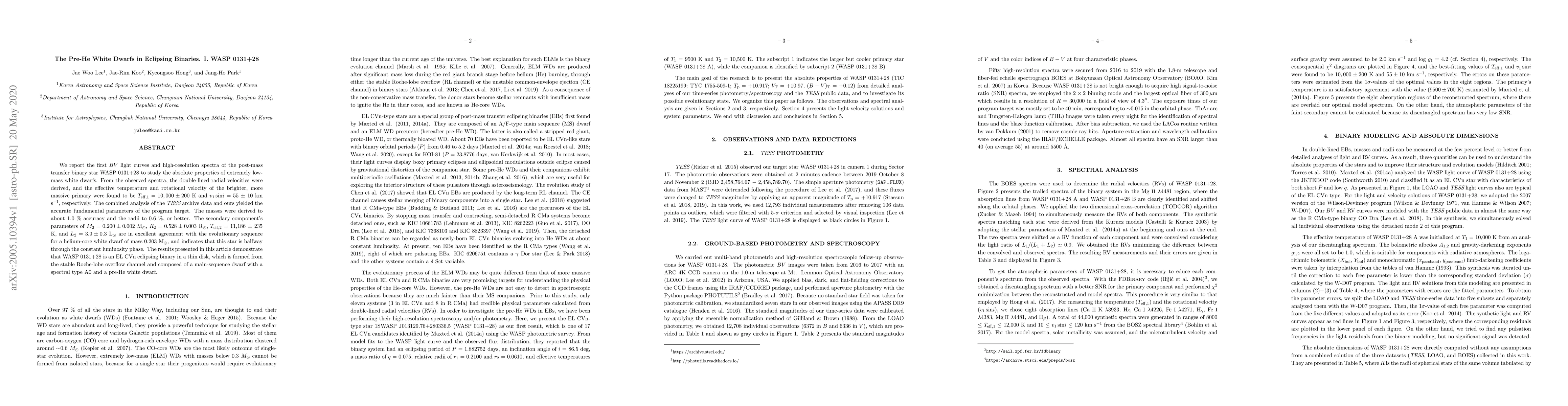 We report the first $BV$ light curves and high-resolution spectra of the post-mass transfer binary star WASP 0131+28 to study the absolute properties of extremely low-mass white dwarfs. From the observed spectra, the double-lined radial velocities were derived, and the effective temperature and rotational velocity of the brighter, more massive primary were found to be $T_{\rm eff,1} = 10,000 \pm 200$ K and $v_1\sin$$i$ = 55 $\pm$ 10 km s$^{-1}$, respectively. The combined analysis of the {\it TESS} archive data and ours yielded the accurate fundamental parameters of the program target. The masses were derived to about 1.0 \% accuracy and the radii to 0.6 \%, or better. The secondary component's parameters of $M_2 = 0.200 \pm 0.002$ M$_\odot$, $R_2 = 0.528 \pm 0.003$ R$_\odot$, $T_{\rm eff,2}$ = 11,186 $\pm$ 235 K, and $L_2 = 3.9 \pm 0.3$ L$_\odot$ are in excellent agreement with the evolutionary sequence for a helium-core white dwarf of mass 0.203 M$_\odot$, and indicates that this star is halfway through the constant luminosity phase. The results presented in this article demonstrate that WASP 0131+28 is an EL CVn eclipsing binary in a thin disk, which is formed from the stable Roche-lobe overflow channel and composed of a main-sequence dwarf with a spectral type A0 and a pre-He white dwarf.