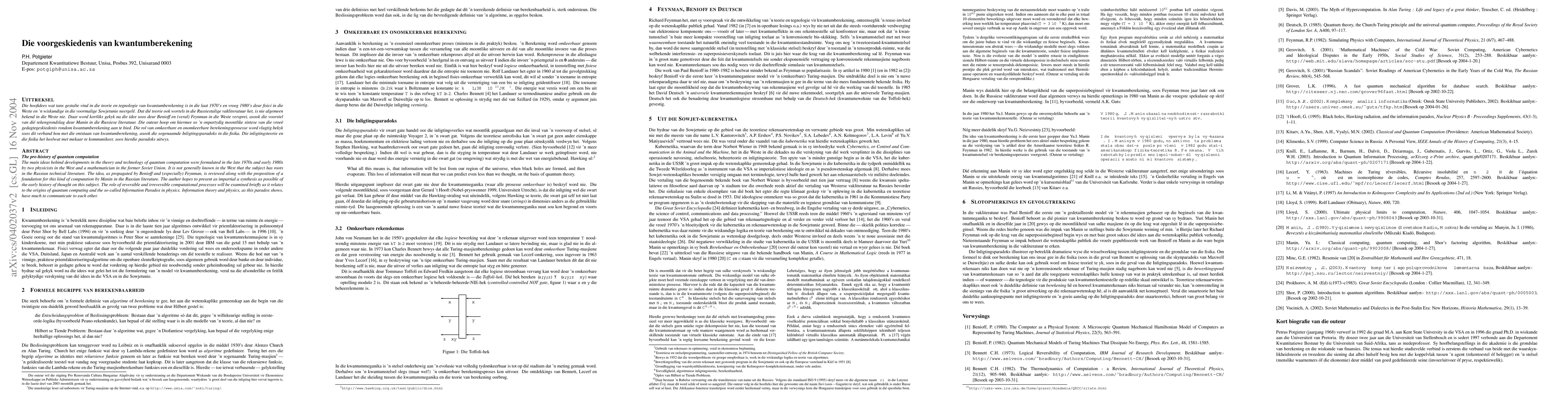This paper explores the early history of quantum computation, tracing its development to the late 1970s and early 1980s, with key contributions from physicists in the West and a mathematician in the former Soviet Union. It examines the role of reversible and irreversible processes in the origins of quantum computing and the Information Paradox.