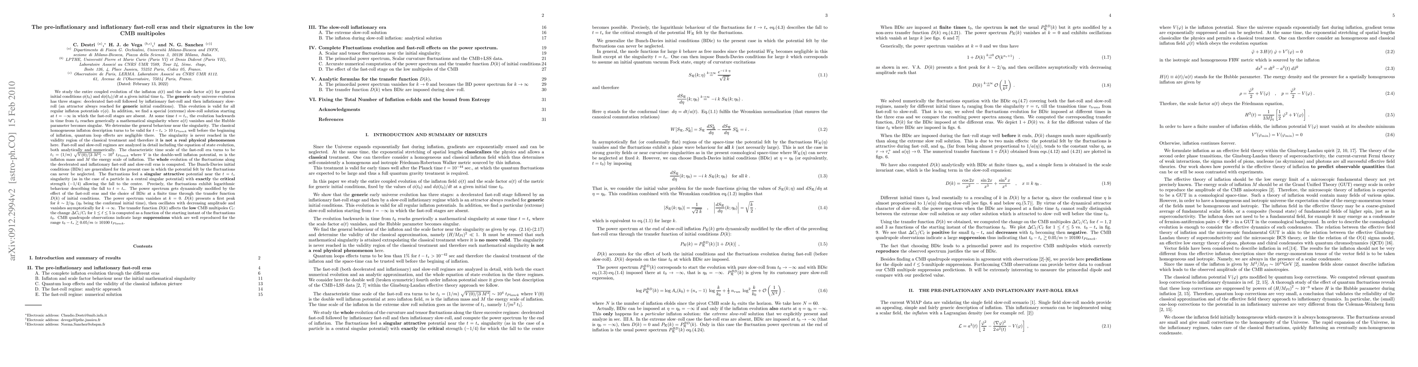 We study the entire coupled evolution of the inflaton and the scale factor for general initial conditions at a given initial time. The generic early universe evolution has three stages: decelerated fast-roll followed by inflationary fast roll and then inflationary slow-roll. This evolution is valid for all regular inflaton potentials. In addition, we find a special (extreme) slow-roll solution starting at t = -infty in which the fast-roll stages are absent. At some time t = t_*, the generic evolution backwards in time reaches a mathematical singu- larity where a(t) vanishes and Hubble becomes singular. We find the general behaviour near the singularity. The classical inflaton description is valid for t-t_* > 10 t_{Planck} well before the beginning of inflation, quantum loop effects are negligible there. The singularity is never reached in the validity region of the classical treatment and therefore it is not a real physical phenomenon here. The whole evolution of the fluctuations is computed. The Bunch-Davies initial conditions (BDic) are generalized for the present case. The power spectrum gets dynamically modified by the effect of the fast-roll eras and the BDic choice at a finite time through the transfer function D(k) of initial conditions. D(0) = 0. D(k) presents a first peak for k ~ 2/eta_0 (eta_0 being the conformal initial time), then oscillates with decreasing amplitude and vanishes asymptotically for k -> infty. The transfer function D(k) affects the low CMB multipoles C_l: the change Delta C_l/C_l for l=1-5 is computed as a function of the starting instant of the fluctuations t_0. CMB quadrupole observations give large suppressions which are well reproduced here(Abridged)