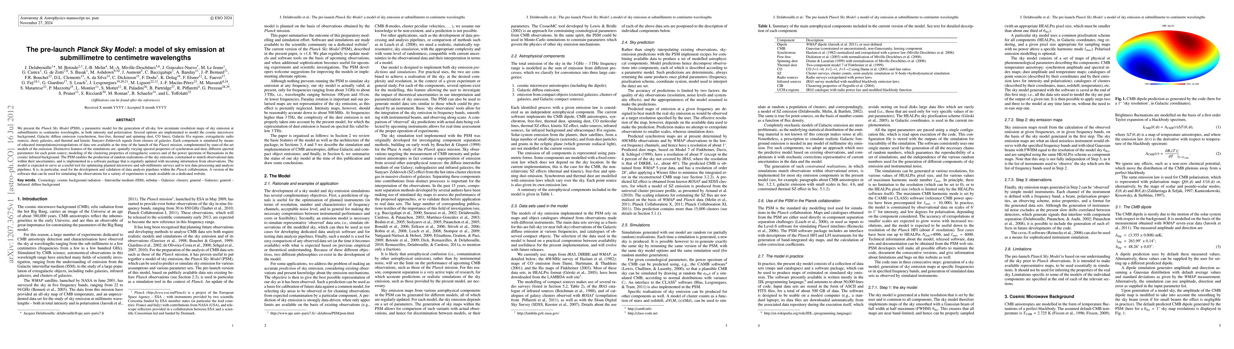 The Planck Sky Model (PSM) provides a comprehensive parametric model for generating all-sky maps of emission at submillimetre to centimetre wavelengths, including intensity and polarization. It incorporates various components like the cosmic microwave background, Galactic and extragalactic emissions, and is updated regularly with observational data.