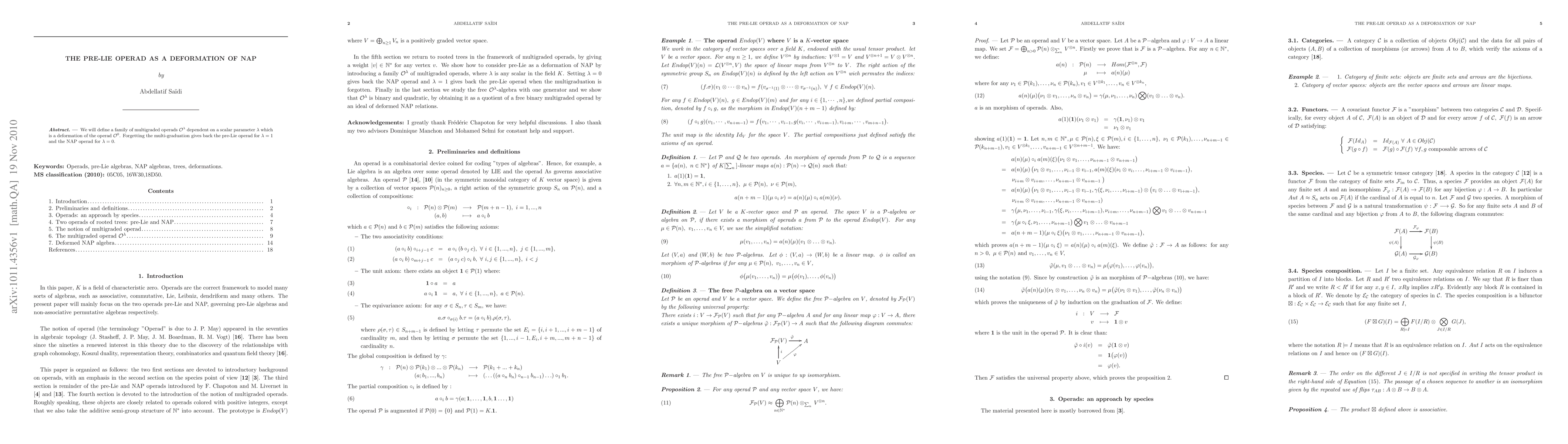 The paper introduces a family of multigraded operads $O_\lambda$ that interpolates between the pre-Lie operad and the NAP operad based on a scalar parameter $\lambda$. When $\lambda = 1$, it recovers the pre-Lie operad, and when $\lambda = 0$, it yields the NAP operad.