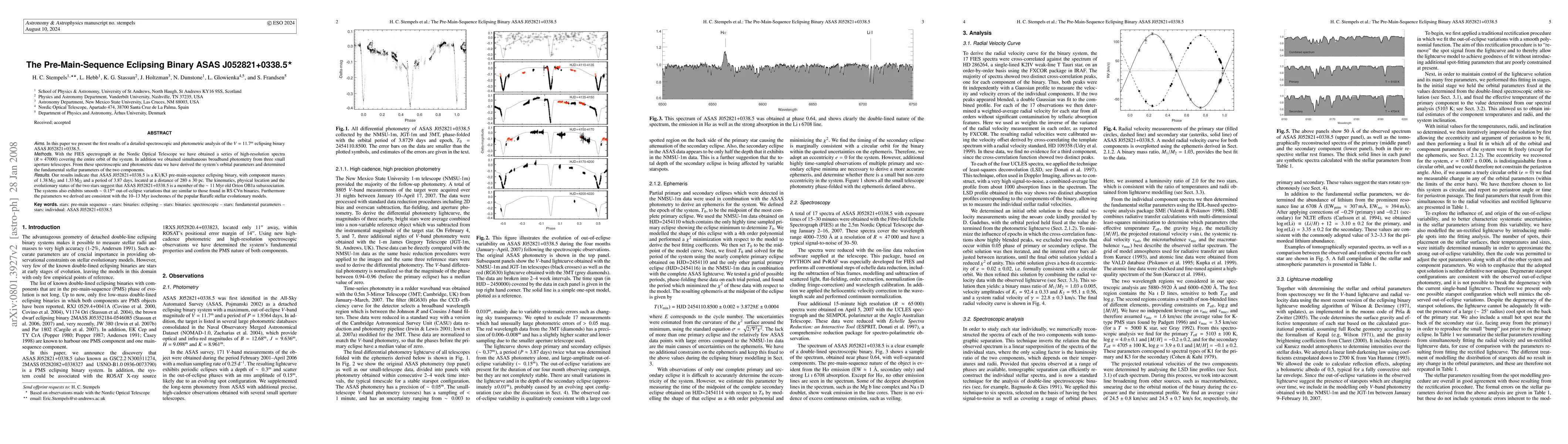 The research employed high-resolution spectroscopy with the FIES spectrograph at the Nordic Optical Telescope and simultaneous broadband photometry from small aperture telescopes to analyze the eclipsing binary ASAS J052821+0338.5.