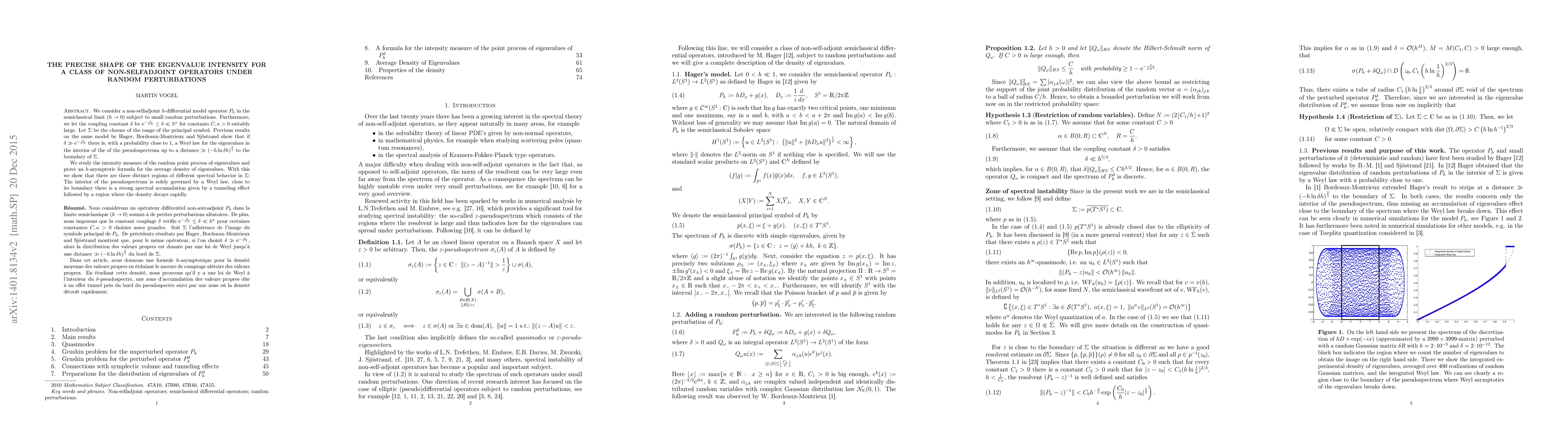 Researchers studied how eigenvalues of a non-selfadjoint operator behave under small random perturbations, finding three distinct spectral regions: one governed by Weyl law, another with strong spectral accumulation due to tunneling effects, and a rapidly decaying region.