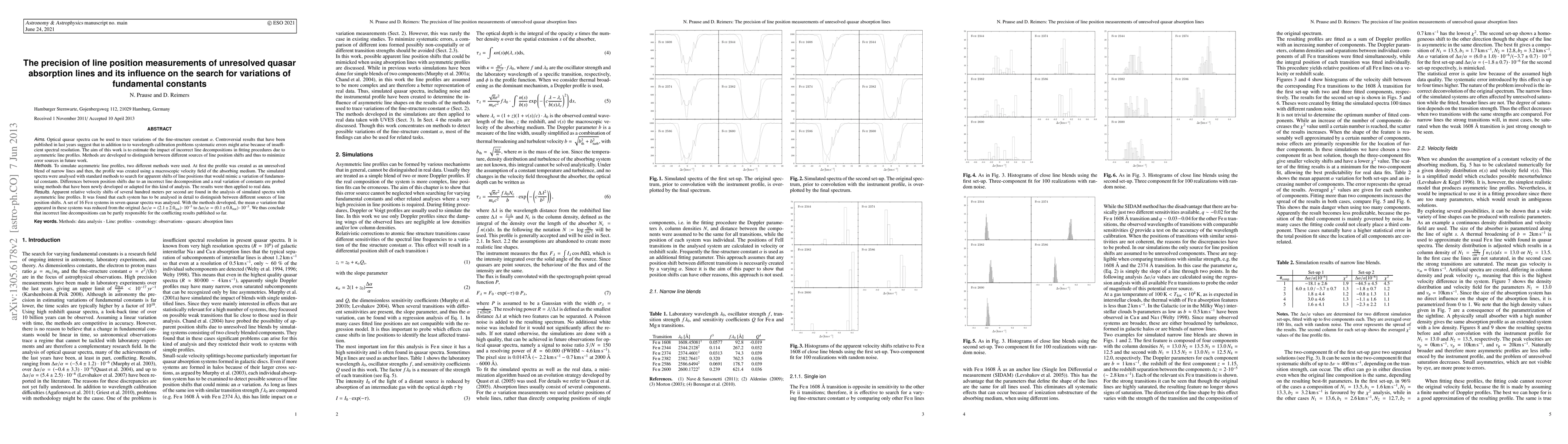 Optical quasar spectra can be used to trace variations of the fine-structure constant alpha. Controversial results that have been published in last years suggest that in addition to to wavelength calibration problems systematic errors might arise because of insufficient spectral resolution. The aim of this work is to estimate the impact of incorrect line decompositions in fitting procedures due to asymmetric line profiles. Methods are developed to distinguish between different sources of line position shifts and thus to minimize error sources in future work. To simulate asymmetric line profiles, two different methods were used. At first the profile was created as an unresolved blend of narrow lines and then, the profile was created using a macroscopic velocity field of the absorbing medium. The simulated spectra were analysed with standard methods to search for apparent shifts of line positions that would mimic a variation of fundamental constants. Differences between position shifts due to an incorrect line decomposition and a real variation of constants were probed using methods that have been newly developed or adapted for this kind of analysis. The results were then applied to real data. Apparent relative velocity shifts of several hundred meters per second are found in the analysis of simulated spectra with asymmetric line profiles. It was found that each system has to be analysed in detail to distinguish between different sources of line position shifts. A set of 16 FeII systems in seven quasar spectra was analysed. With the methods developed, the mean alpha variation that appeared in these systems was reduced from the original Dalpha/alpha=(2.1+/-2.0)x10^-5 to Dalpha/alpha=(0.1+/-0.8)x10^-5. We thus conclude that incorrect line decompositions can be partly responsible for the conflicting results published so far.
