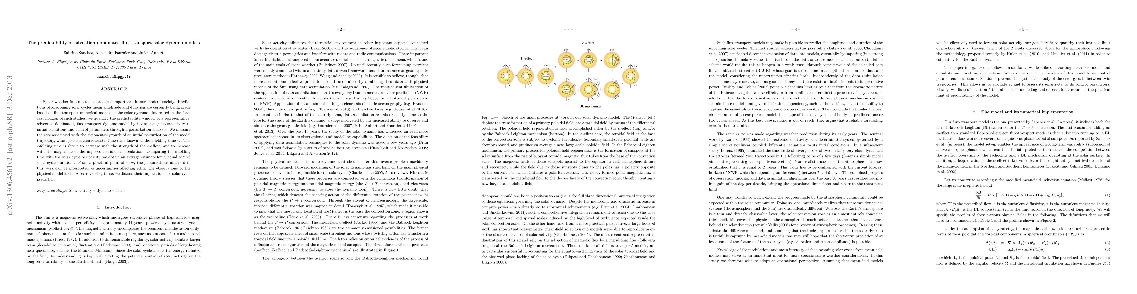 This paper investigates the predictability of advection-dominated flux-transport solar dynamo models, finding that the e-folding time $\tau_e$ is 2.76 solar cycle durations. It concludes that model predictability decreases with stronger $\alpha$-effects and increases with stronger meridional circulation.