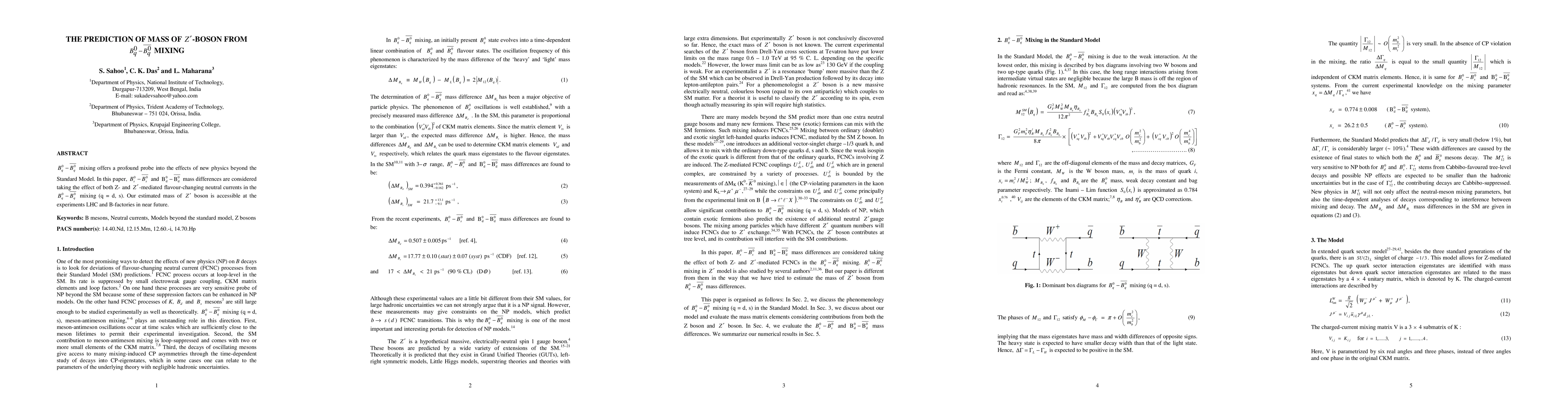 This paper predicts the mass of a Z' boson using $B_q^0-B_q^0 bar$ mixing in B physics experiments, which could reveal new physics beyond the Standard Model, with an estimated accessible value at LHC and B-factories.