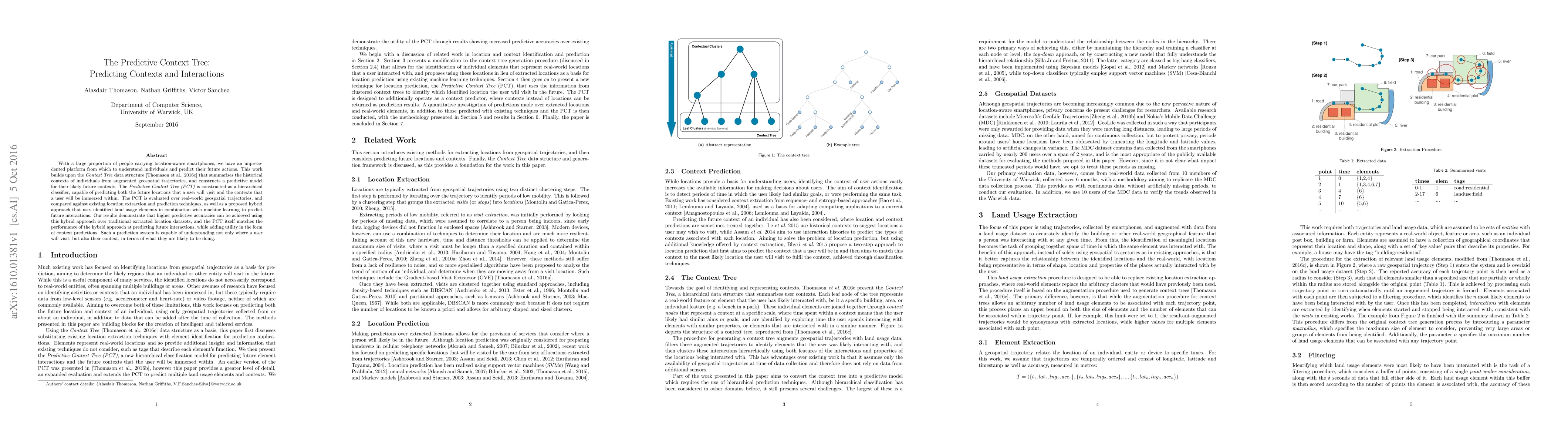 With a large proportion of people carrying location-aware smartphones, we have an unprecedented platform from which to understand individuals and predict their future actions. This work builds upon the Context Tree data structure that summarises the historical contexts of individuals from augmented geospatial trajectories, and constructs a predictive model for their likely future contexts. The Predictive Context Tree (PCT) is constructed as a hierarchical classifier, capable of predicting both the future locations that a user will visit and the contexts that a user will be immersed within. The PCT is evaluated over real-world geospatial trajectories, and compared against existing location extraction and prediction techniques, as well as a proposed hybrid approach that uses identified land usage elements in combination with machine learning to predict future interactions. Our results demonstrate that higher predictive accuracies can be achieved using this hybrid approach over traditional extracted location datasets, and the PCT itself matches the performance of the hybrid approach at predicting future interactions, while adding utility in the form of context predictions. Such a prediction system is capable of understanding not only where a user will visit, but also their context, in terms of what they are likely to be doing.