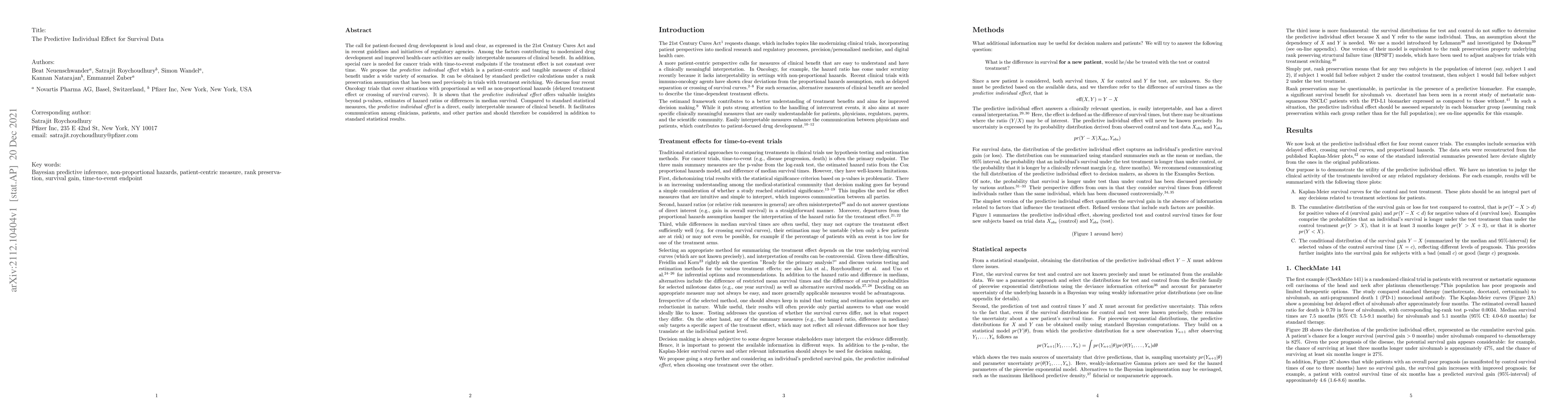 A new measure called the predictive individual effect provides a patient-centric way to assess clinical benefit in cancer trials with time-to-event endpoints. It offers valuable insights beyond traditional statistical measures, facilitating communication among clinicians, patients, and other parties.