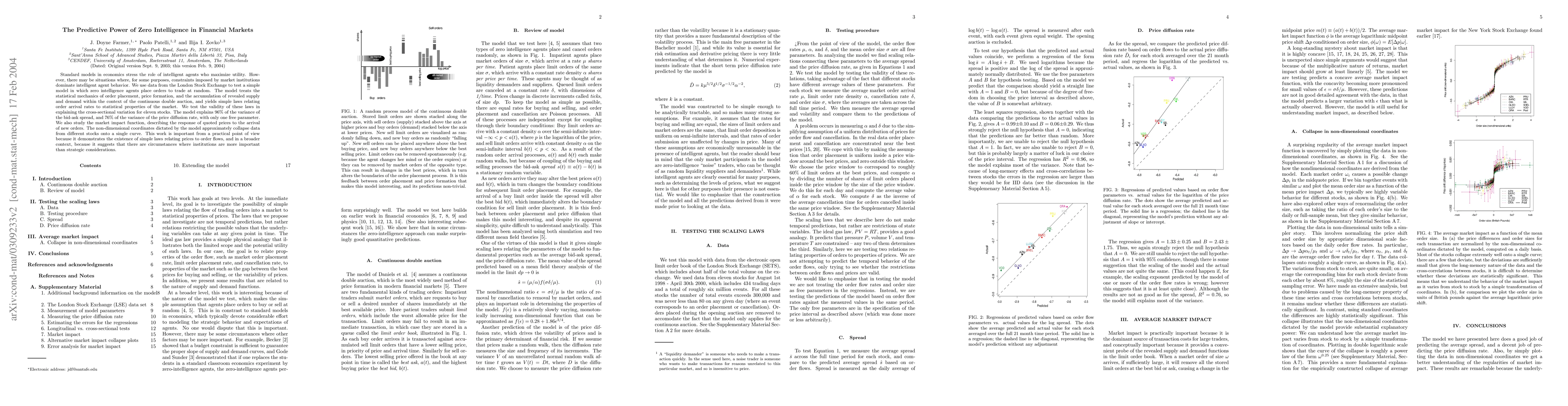 Standard models in economics stress the role of intelligent agents who maximize utility. However, there may be situations where, for some purposes, constraints imposed by market institutions dominate intelligent agent behavior. We use data from the London Stock Exchange to test a simple model in which zero intelligence agents place orders to trade at random. The model treats the statistical mechanics of order placement, price formation, and the accumulation of revealed supply and demand within the context of the continuous double auction, and yields simple laws relating order arrival rates to statistical properties of the market. We test the validity of these laws in explaining the cross-sectional variation for eleven stocks. The model explains 96% of the variance of the bid-ask spread, and 76% of the variance of the price diffusion rate, with only one free parameter. We also study the market impact function, describing the response of quoted prices to the arrival of new orders. The non-dimensional coordinates dictated by the model approximately collapse data from different stocks onto a single curve. This work is important from a practical point of view because it demonstrates the existence of simple laws relating prices to order flows, and in a broader context, because it suggests that there are circumstances where institutions are more important than strategic considerations.