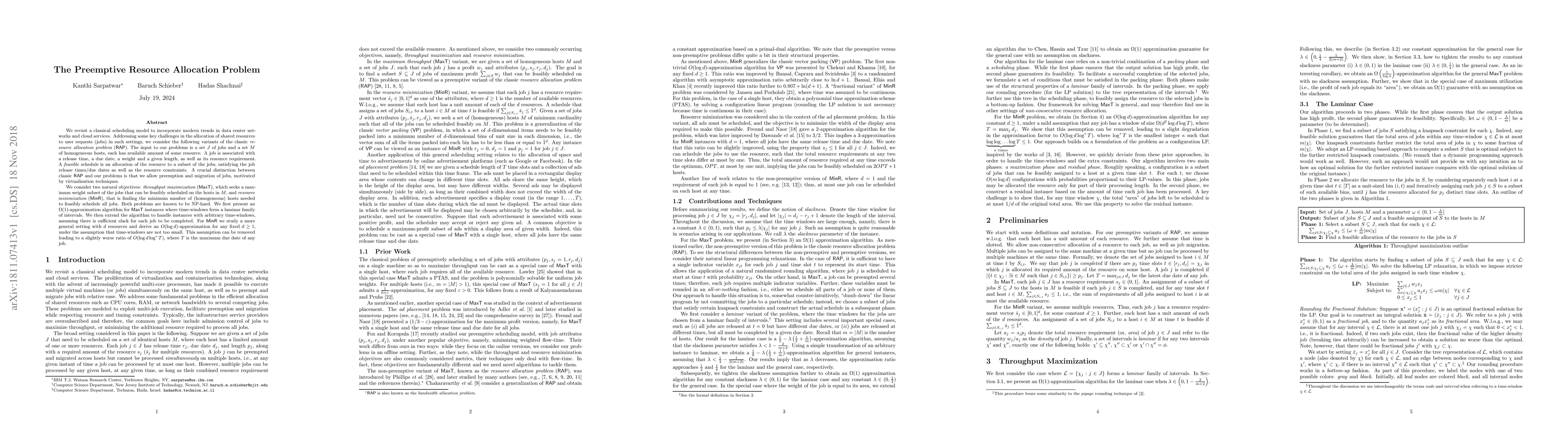 The paper revisits the classical scheduling model, incorporating modern trends in data center networks and cloud services. It addresses resource allocation challenges by allowing preemption and migration of jobs, motivated by virtualization techniques, and considers two objectives: throughput maximization (MaxT) and resource minimization (MinR).