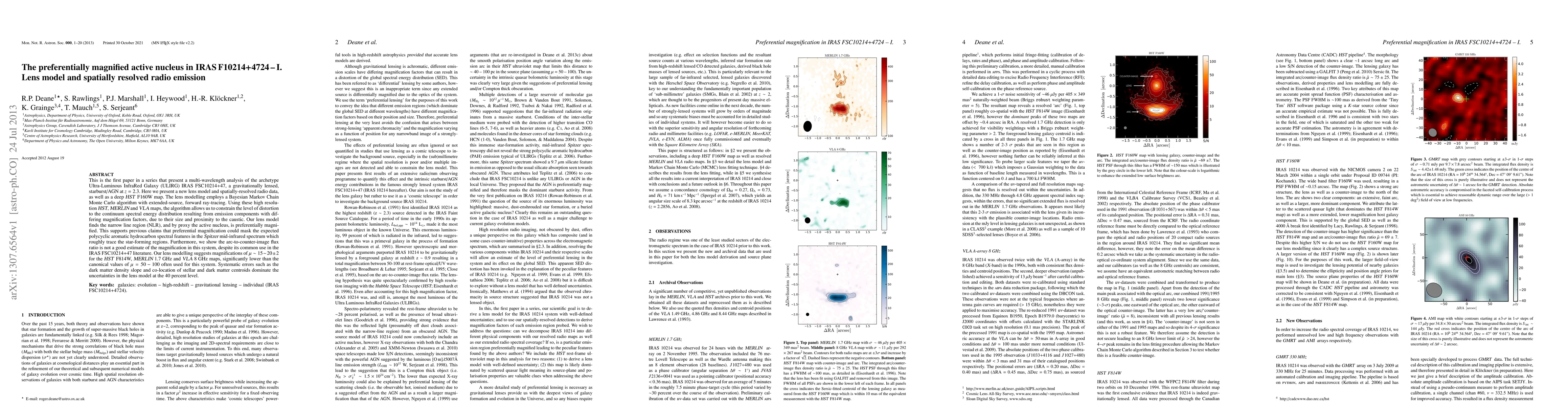 This is the first paper in a series that present a multi-wavelength analysis of the archetype Ultra-Luminous InfraRed Galaxy (ULIRG) IRAS FSC10214+4724, a gravitationally lensed, starburst/AGN at z=2.3. Here we present a new lens model and spatially-resolved radio data, as well as a deep HST F160W map. The lens modelling employs a Bayesian Markov Chain Monte Carlo algorithm with extended-source, forward ray-tracing. Using these high resolution HST, MERLIN and VLA maps, the algorithm allows us to constrain the level of distortion to the continuum spectral energy distribution resulting from emission components with differing magnification factors, due to their size and proximity to the caustic. Our lens model finds the narrow line region (NLR), and by proxy the active nucleus, is preferentially magnified. This supports previous claims that preferential magnification could mask the expected polycyclic aromatic hydrocarbon spectral features in the Spitzer mid-infrared spectrum which roughly trace the star-forming regions. Furthermore, we show the arc-to-counter-image flux ratio is not a good estimate of the magnification in this system, despite its common use in the IRAS FSC10214+4724 literature. Our lens modelling suggests magnifications of \mu ~ 15-20+-2 for the HST F814W, MERLIN 1.7 GHz and VLA 8 GHz maps, significantly lower than the canonical values of \mu = 50-100 often used for this system. Systematic errors such as the dark matter density slope and co-location of stellar and dark matter centroids dominate the uncertainties in the lens model at the 40 percent level.