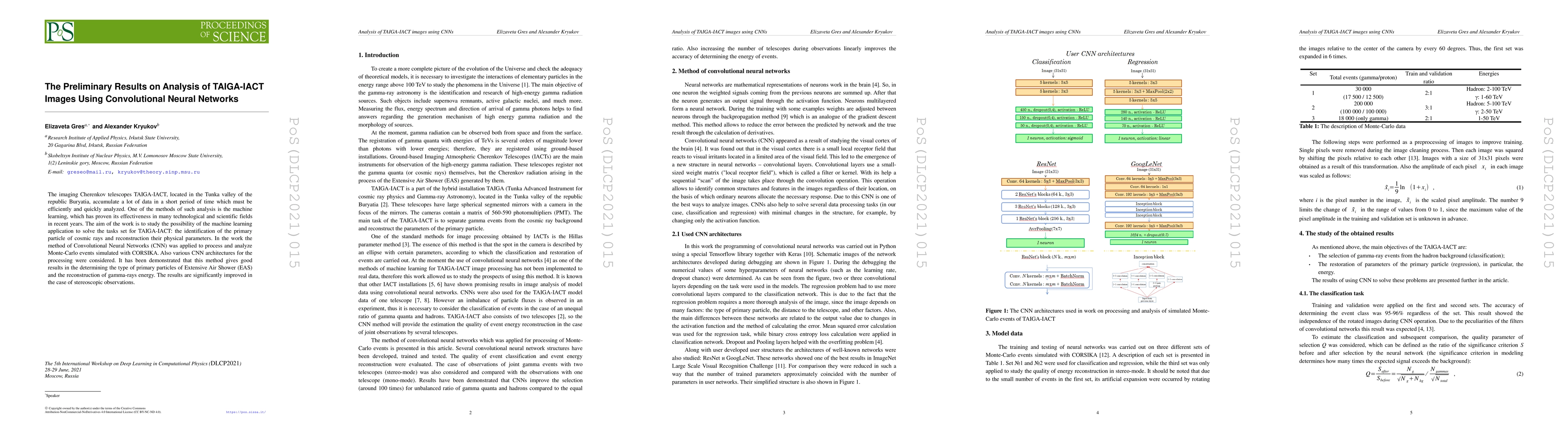 This study explores the application of Convolutional Neural Networks (CNN) to analyze TAIGA-IACT imaging Cherenkov telescope data for identifying cosmic ray primary particles and reconstructing their parameters. The results show promising accuracy in determining particle types and gamma-ray energies, especially with stereoscopic observations.