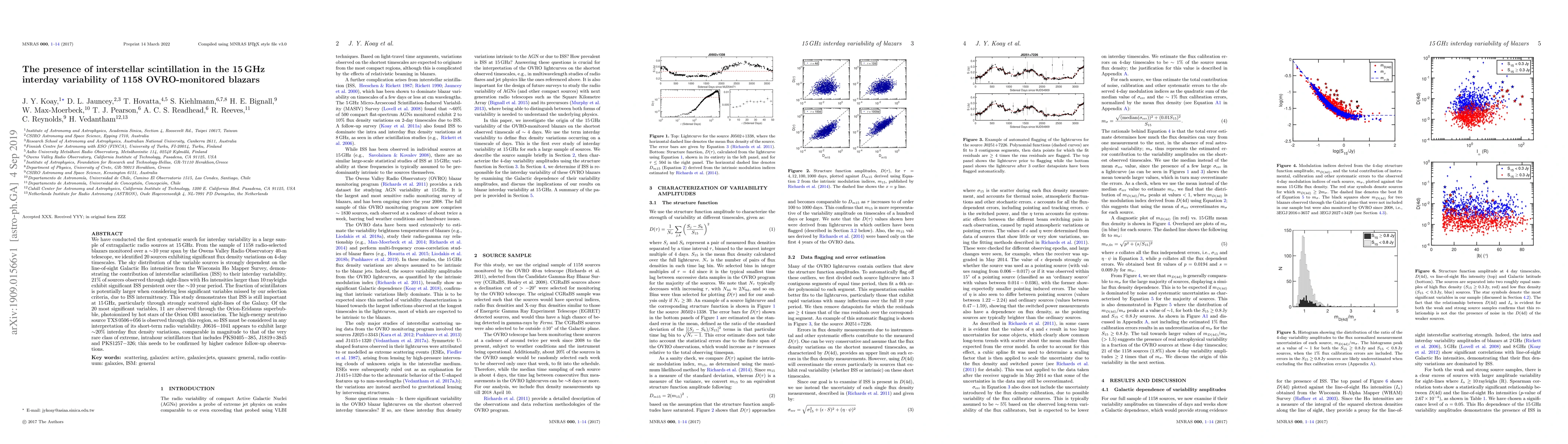 We have conducted the first systematic search for interday variability in a large sample of extragalactic radio sources at 15 GHz. From the sample of 1158 radio-selected blazars monitored over a $\sim$10 year span by the Owens Valley Radio Observatory 40-m telescope, we identified 20 sources exhibiting significant flux density variations on 4-day timescales. The sky distribution of the variable sources is strongly dependent on the line-of-sight Galactic H$\alpha$ intensities from the Wisconsin H$\alpha$ Mapper Survey, demonstrating the contribution of interstellar scintillation (ISS) to their interday variability. 21% of sources observed through sight-lines with H$\alpha$ intensities larger than 10 rayleighs exhibit significant ISS persistent over the $\sim$10 year period. The fraction of scintillators is potentially larger when considering less significant variables missed by our selection criteria, due to ISS intermittency. This study demonstrates that ISS is still important at 15 GHz, particularly through strongly scattered sight-lines of the Galaxy. Of the 20 most significant variables, 11 are observed through the Orion-Eridanus superbubble, photoionized by hot stars of the Orion OB1 association. The high-energy neutrino source TXS0506$+$056 is observed through this region, so ISS must be considered in any interpretation of its short-term radio variability. J0616$-$1041 appears to exhibit large $\sim$20% interday flux density variations, comparable in magnitude to that of the very rare class of extreme, intrahour scintillators that includes PKS0405$-$385, J1819$+$3845 and PKS1257$-$326; this needs to be confirmed by higher cadence follow-up observations.