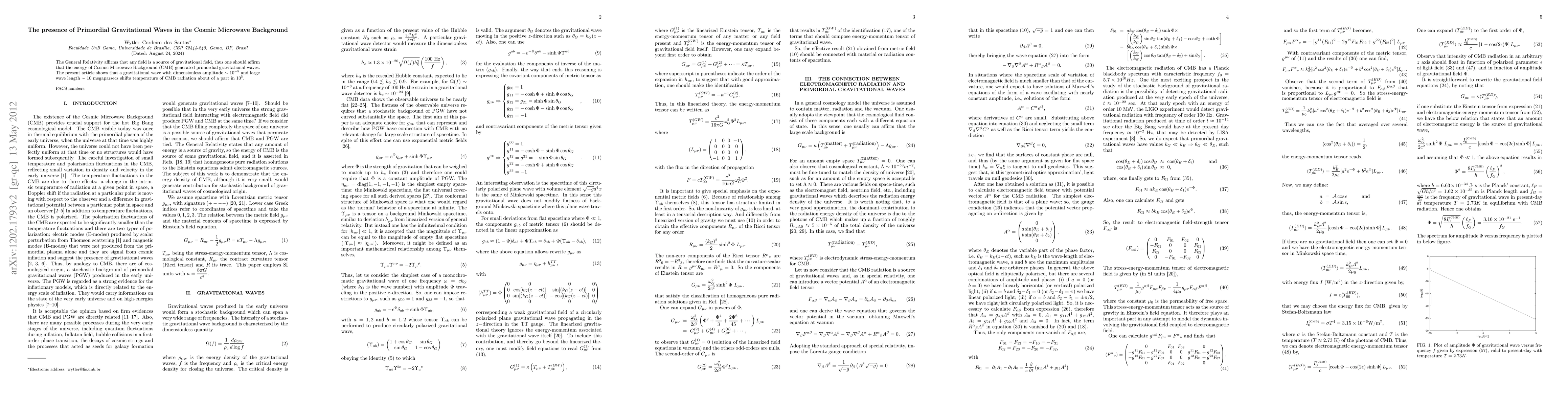 Summary: This paper investigates the generation of primordial gravitational waves from the Cosmic Microwave Background (CMB) energy, confirming their presence with a gravitational wave of amplitude $\sim 10^{-5}$ and wavelength $\sim 10$ megaparsecs, which causes a temperature shift in the CMB by a factor of $10^{5}$.