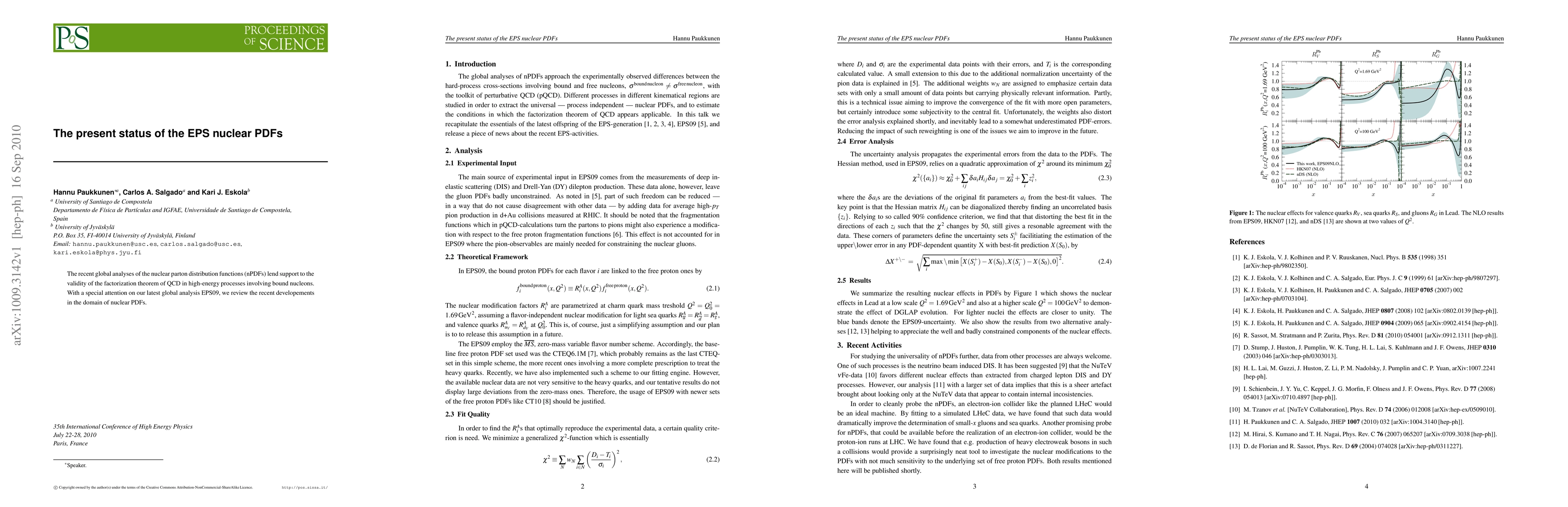 The recent global analyses of the nuclear parton distribution functions (nPDFs) lend support to the validity of the factorization theorem of QCD in high-energy processes involving bound nucleons. With a special attention on our latest global analysis EPS09, we review the recent developements in the domain of nuclear PDFs.