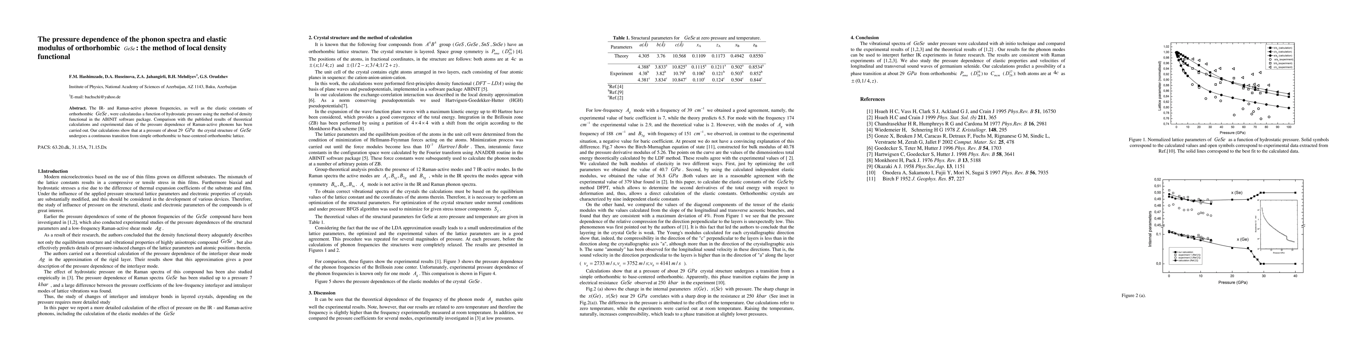 The research uses density functional theory in ABINIT software to calculate phonon frequencies and elastic constants of orthorhombic GeSe under hydrostatic pressure. It reveals a structural transition from simple orthorhombic to base-centered orthorhombic lattice at approximately 29 GPa, corroborated by comparisons with theoretical and experimental data.