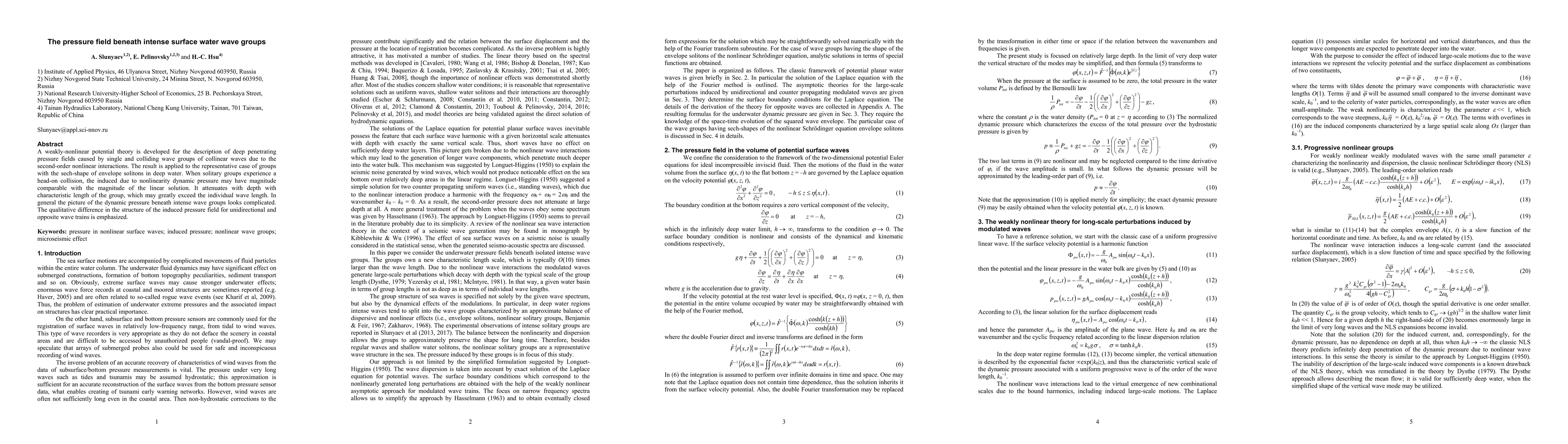 This paper develops a weakly-nonlinear potential theory to analyze deep penetrating pressure fields from intense surface wave groups, showing significant nonlinear dynamic pressure effects during collisions. The study highlights the complex pressure structure beneath wave groups and contrasts the pressure fields of unidirectional versus opposite wave trains.