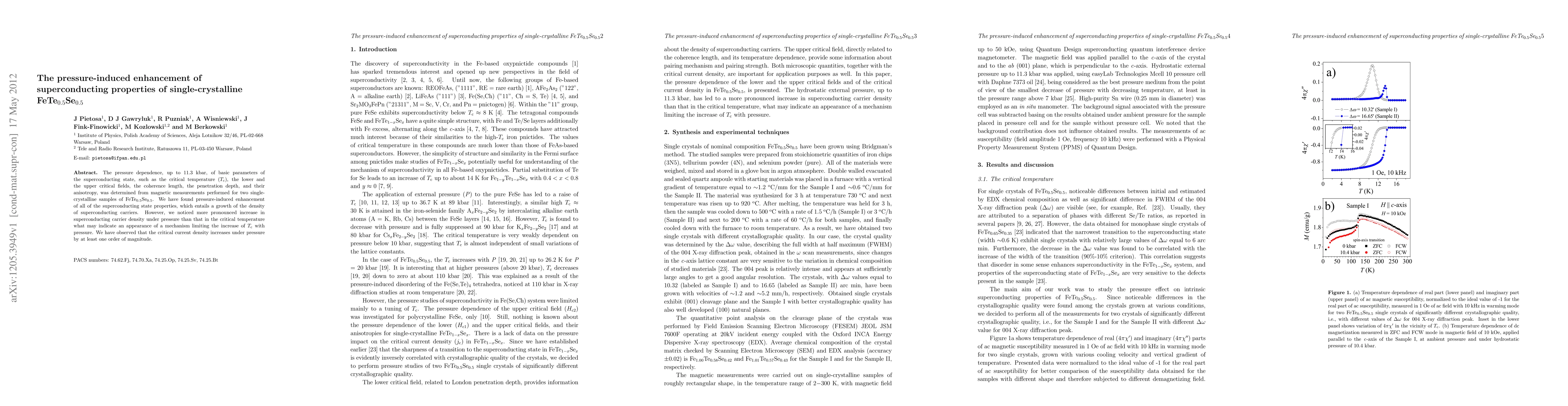 This study investigates the pressure-induced effects on superconducting properties of single-crystalline FeTe0.5Se0.5, finding significant enhancements in critical temperature, critical fields, coherence length, and penetration depth. The pressure leads to a substantial increase in superconducting carrier density, though the rise in Tc is limited by an unknown mechanism.