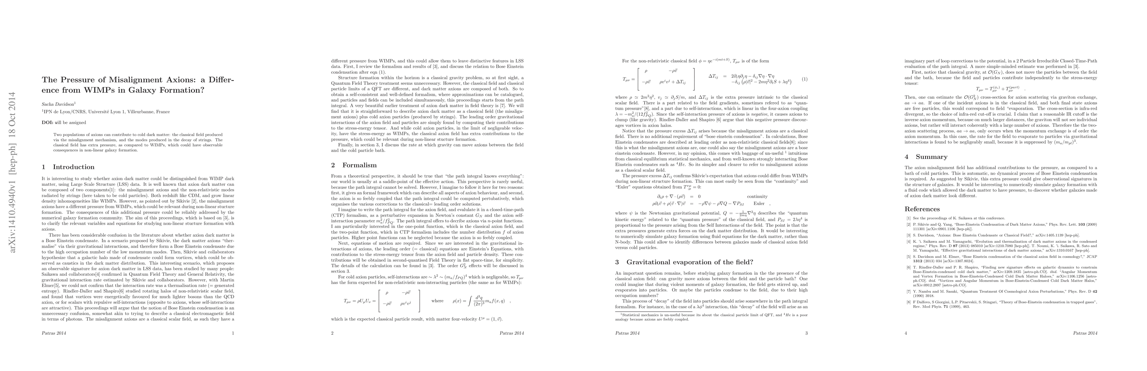 Research explores how axions produced through misalignment mechanisms could impact galaxy formation due to their extra pressure compared to WIMPs, potentially leading to observable effects.