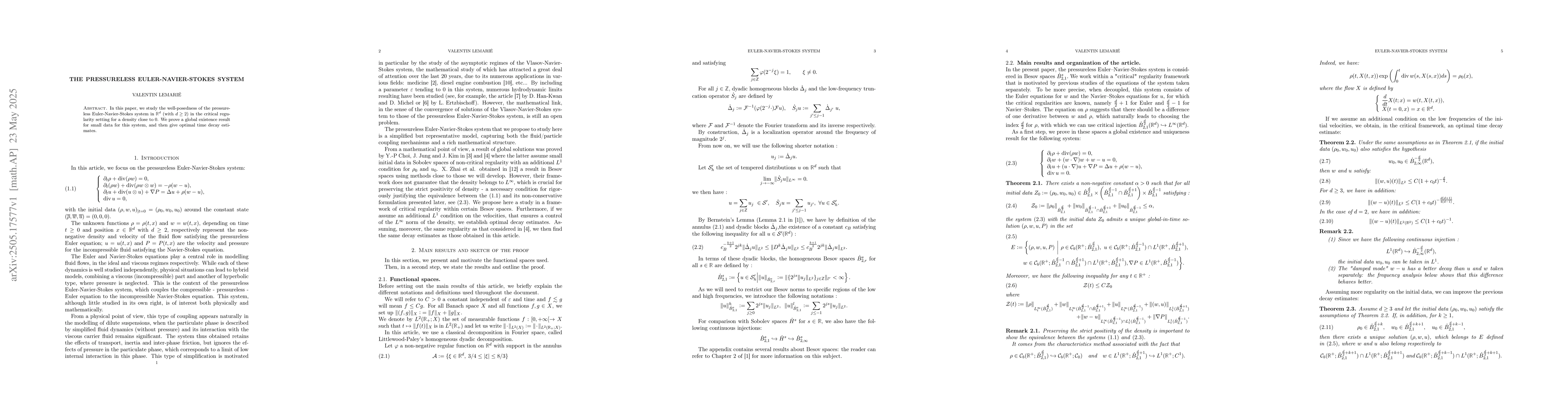 This paper studies the well-posedness of a pressureless Euler-Navier-Stokes system in $d$ dimensions, proving global existence for small data and optimal time decay estimates.