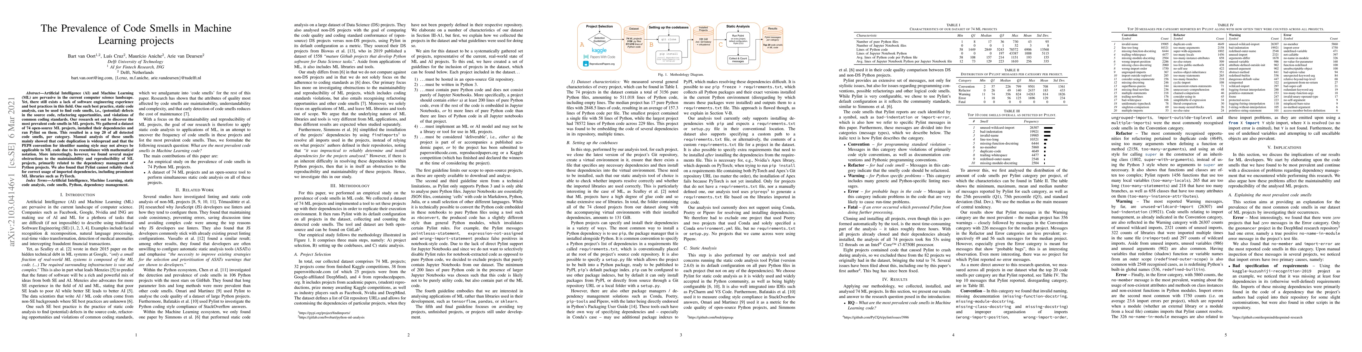 This study investigates prevalent code smells in open-source machine learning projects, identifying widespread code duplication and challenges in adhering to PEP8 naming conventions due to mathematical notation. The research also highlights significant issues with dependency management, revealing limitations in static code analysis tools like Pylint for verifying imported ML libraries.
