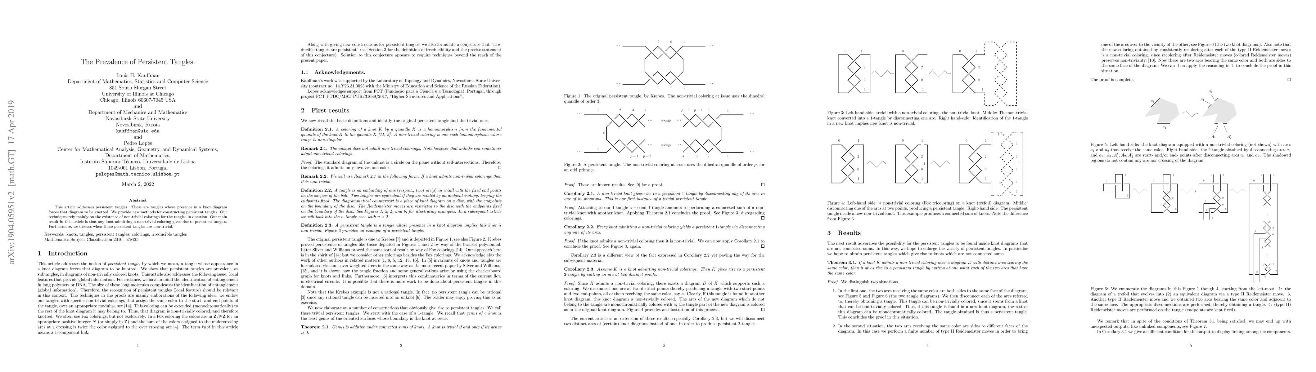 The paper presents new techniques for constructing persistent tangles using non-trivial colorings and Reidemeister moves, expanding the known varieties of persistent tangles.