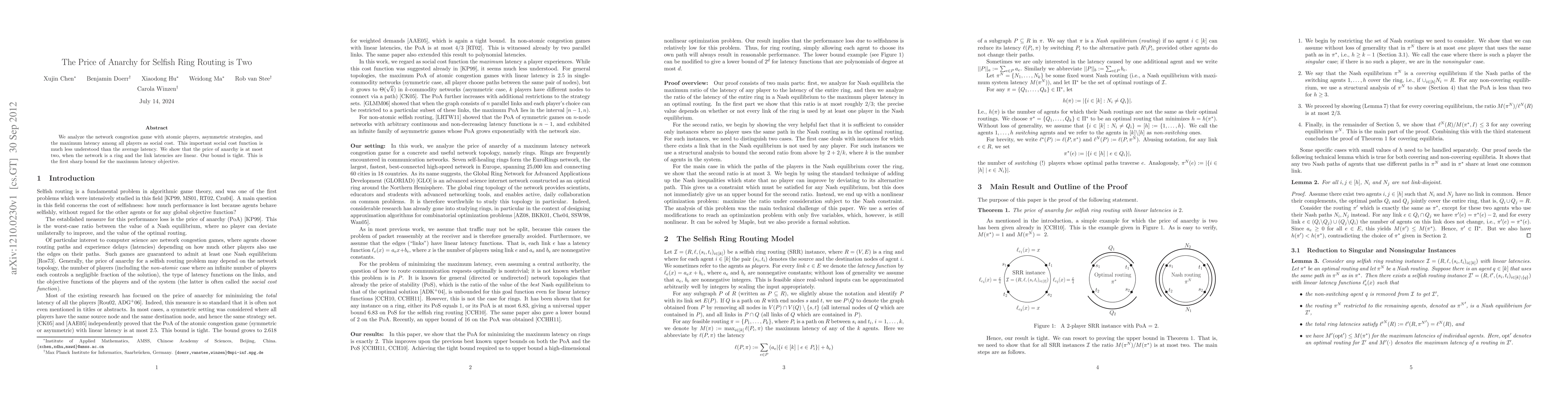 Researchers found that in a ring network with selfish players, the maximum latency is at most two, providing a tight bound on this important social cost function.