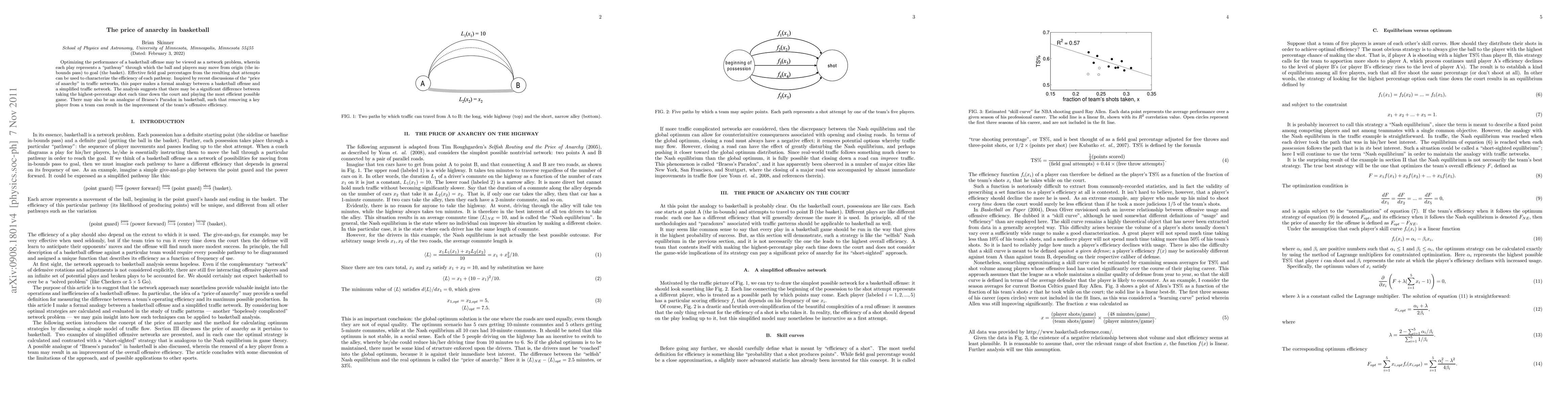 Optimizing the performance of a basketball offense may be viewed as a network problem, wherein each play represents a "pathway" through which the ball and players may move from origin (the in-bounds pass) to goal (the basket). Effective field goal percentages from the resulting shot attempts can be used to characterize the efficiency of each pathway. Inspired by recent discussions of the "price of anarchy" in traffic networks, this paper makes a formal analogy between a basketball offense and a simplified traffic network. The analysis suggests that there may be a significant difference between taking the highest-percentage shot each time down the court and playing the most efficient possible game. There may also be an analogue of Braess's Paradox in basketball, such that removing a key player from a team can result in the improvement of the team's offensive efficiency.