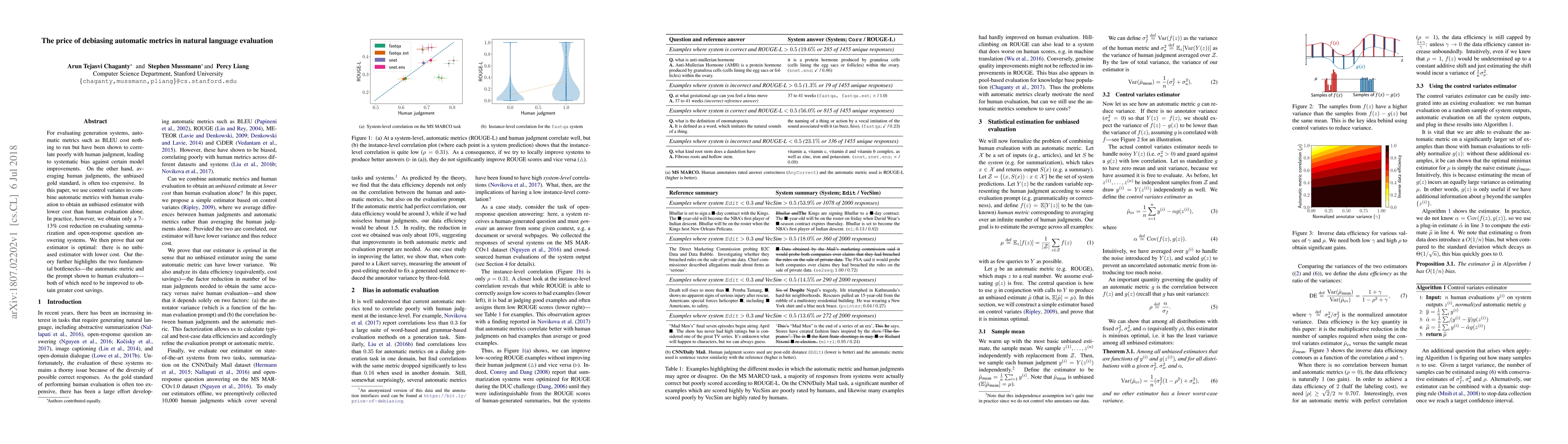 For evaluating generation systems, automatic metrics such as BLEU cost nothing to run but have been shown to correlate poorly with human judgment, leading to systematic bias against certain model improvements. On the other hand, averaging human judgments, the unbiased gold standard, is often too expensive. In this paper, we use control variates to combine automatic metrics with human evaluation to obtain an unbiased estimator with lower cost than human evaluation alone. In practice, however, we obtain only a 7-13% cost reduction on evaluating summarization and open-response question answering systems. We then prove that our estimator is optimal: there is no unbiased estimator with lower cost. Our theory further highlights the two fundamental bottlenecks---the automatic metric and the prompt shown to human evaluators---both of which need to be improved to obtain greater cost savings.