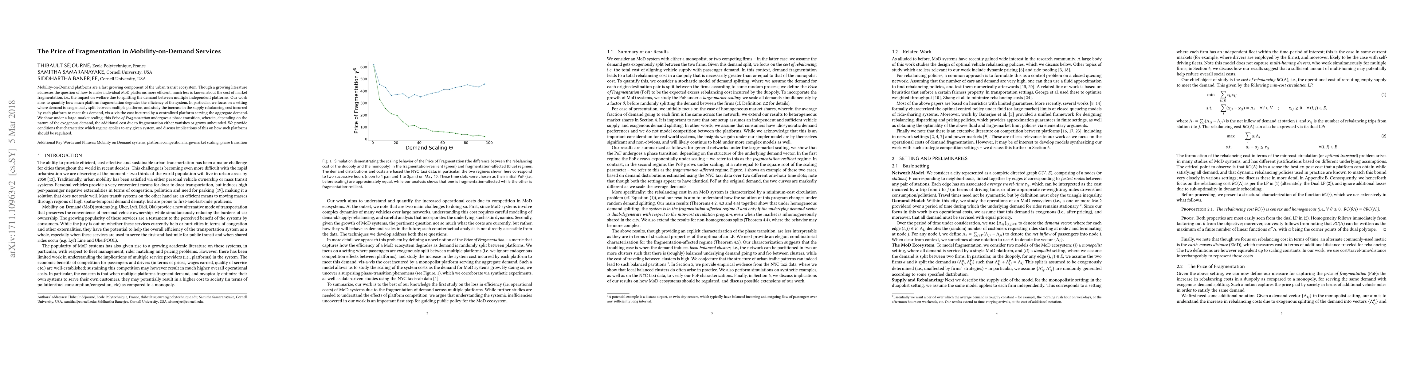 Mobility-on-Demand platforms are a fast growing component of the urban transit ecosystem. Though a growing literature addresses the question of how to make individual MoD platforms more efficient, much less is known about the cost of market fragmentation, i.e., the impact on welfare due to splitting the demand between multiple independent platforms. Our work aims to quantify how much platform fragmentation degrades the efficiency of the system. In particular, we focus on a setting where demand is exogenously split between multiple platforms, and study the increase in the supply rebalancing cost incurred by each platform to meet this demand, vis-a-vis the cost incurred by a centralized platform serving the aggregate demand. We show under a large-market scaling, this Price-of-Fragmentation undergoes a phase transition, wherein, depending on the nature of the exogenous demand, the additional cost due to fragmentation either vanishes or grows unbounded. We provide conditions that characterize which regime applies to any given system, and discuss implications of this on how such platforms should be regulated.