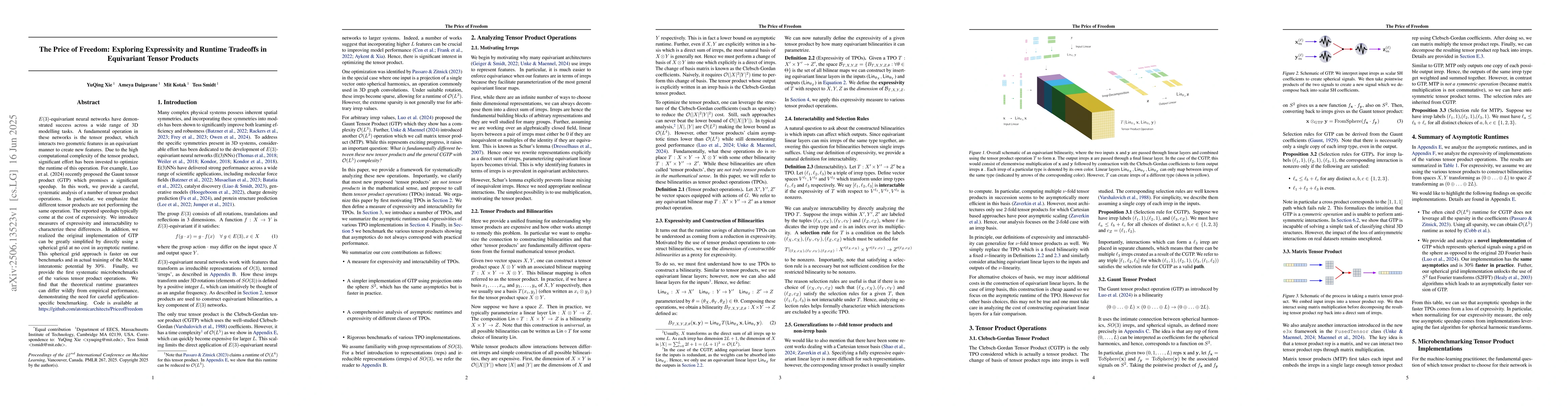$E(3)$-equivariant neural networks have demonstrated success across a wide range of 3D modelling tasks. A fundamental operation in these networks is the tensor product, which interacts two geometric features in an equivariant manner to create new features. Due to the high computational complexity of the tensor product, significant effort has been invested to optimize the runtime of this operation. For example, Luo et al. (2024) recently proposed the Gaunt tensor product (GTP) which promises a significant speedup. In this work, we provide a careful, systematic analysis of a number of tensor product operations. In particular, we emphasize that different tensor products are not performing the same operation. The reported speedups typically come at the cost of expressivity. We introduce measures of expressivity and interactability to characterize these differences. In addition, we realized the original implementation of GTP can be greatly simplified by directly using a spherical grid at no cost in asymptotic runtime. This spherical grid approach is faster on our benchmarks and in actual training of the MACE interatomic potential by 30\%. Finally, we provide the first systematic microbenchmarks of the various tensor product operations. We find that the theoretical runtime guarantees can differ wildly from empirical performance, demonstrating the need for careful application-specific benchmarking. Code is available at \href{https://github.com/atomicarchitects/PriceofFreedom}{https://github.com/atomicarchitects/PriceofFreedom}