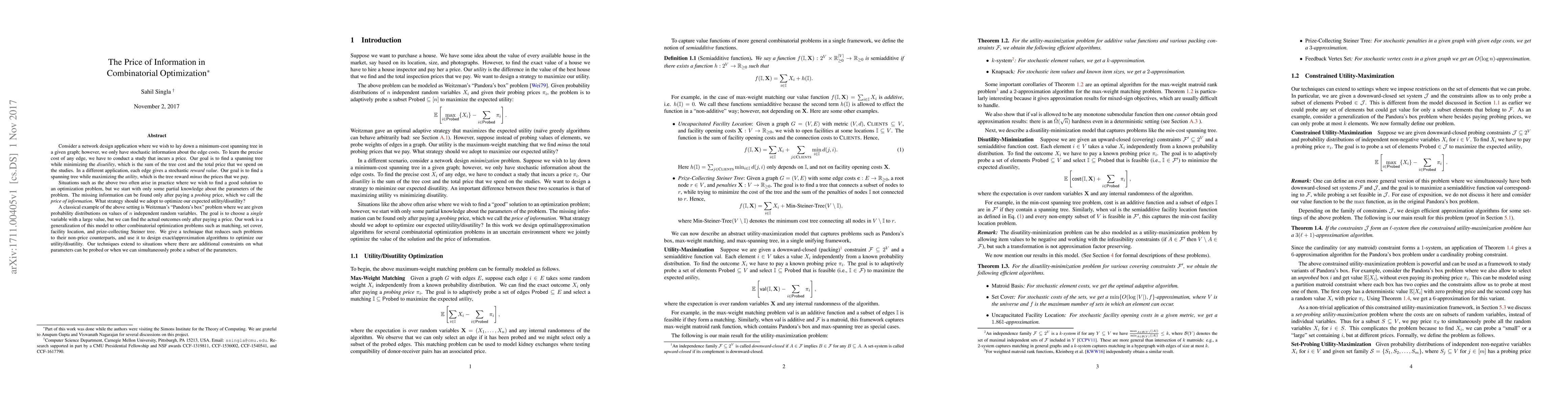 Researchers developed a strategy to optimize utility/disutility in combinatorial optimization problems with partial knowledge, reducing it to non-price counterparts for exact/approximation algorithms.