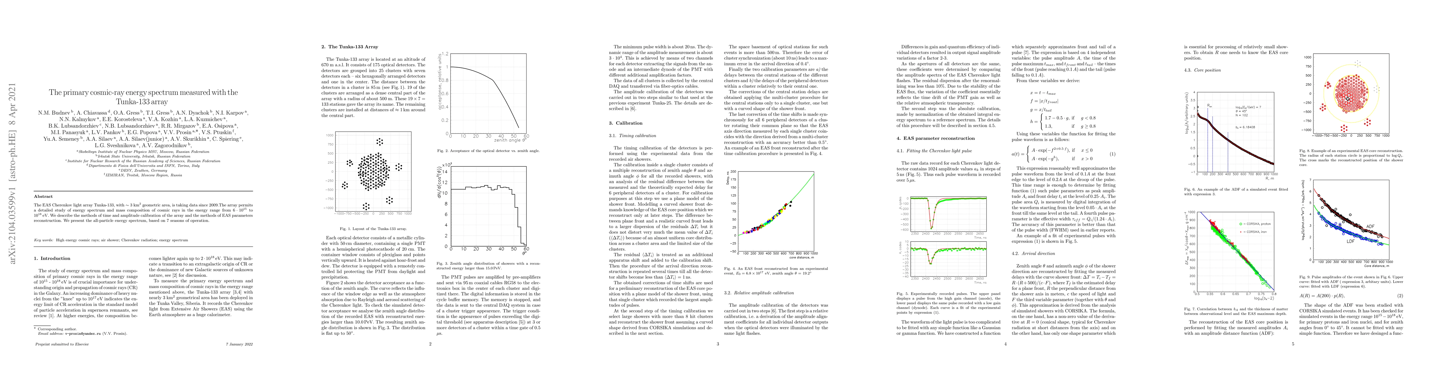 The Tunka-133 array measured the cosmic-ray energy spectrum from $6 imes 10^{15}$ to $10^{18}$ eV electrons, providing insights into high-energy particle composition.