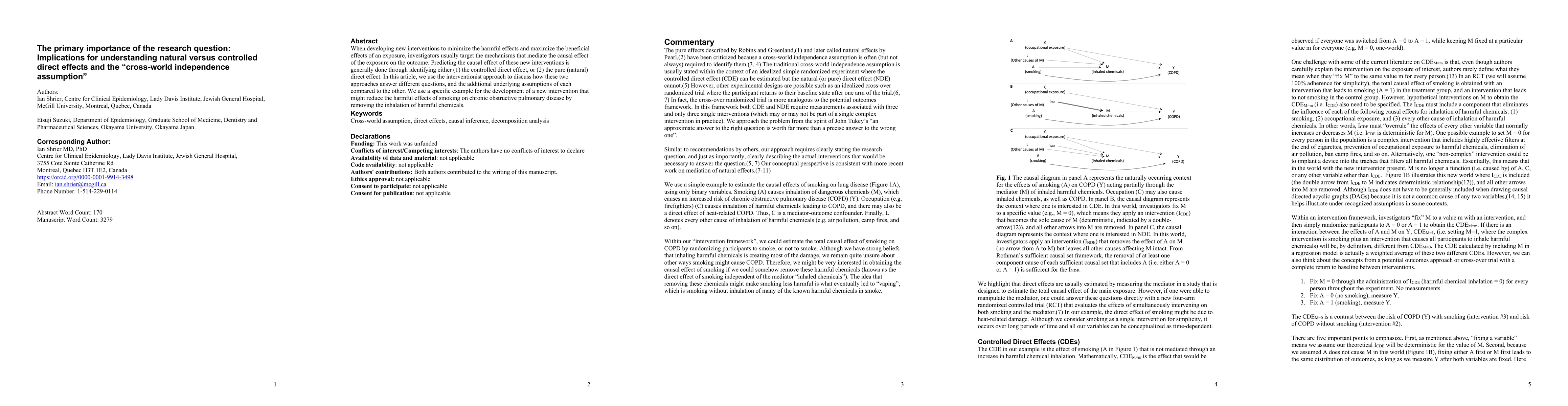 When developing new interventions to minimize the harmful effects of an exposure, investigators usually target the mechanisms that mediate the causal effect of the exposure on the outcome. Predicting the causal effect of these new interventions is generally done through identifying either (1) the controlled direct effect, or (2) the pure (natural) direct effect. In this opinion piece, we use the interventionist approach to discuss how these two approaches answer different questions, and the additional underlying assumptions of each compared to the other. We use a specific example for the development of a new intervention that might reduce the harmful effects of smoking on chronic obstructive pulmonary disease by removing the inhalation of harmful chemicals.