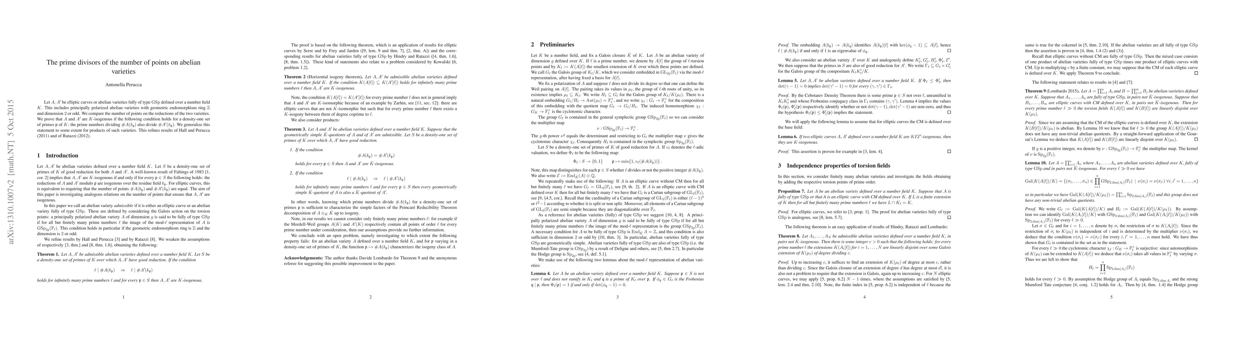 A study on abelian varieties reveals a condition for two varieties to be K-isogenous based on prime numbers dividing the number of points on their reductions, refining previous results.