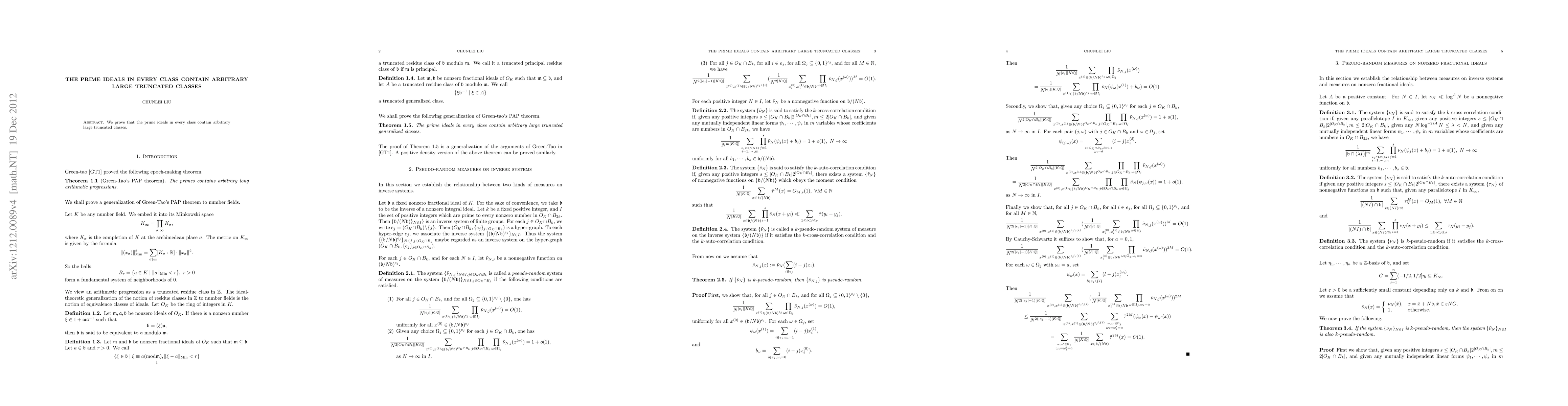 Summary: This paper demonstrates that prime ideals within any class of a number field encompass arbitrarily large truncated ideal classes. The result highlights the extensive reach of prime ideals in the structure of number fields.